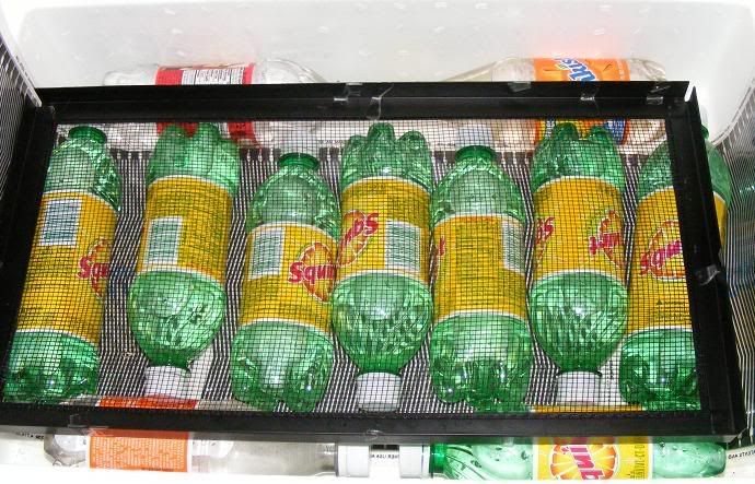 Lay something on top of the bottles to act as a shelf (you can the light grate from Home Depot (like you are using in the substrate less egg boxes)