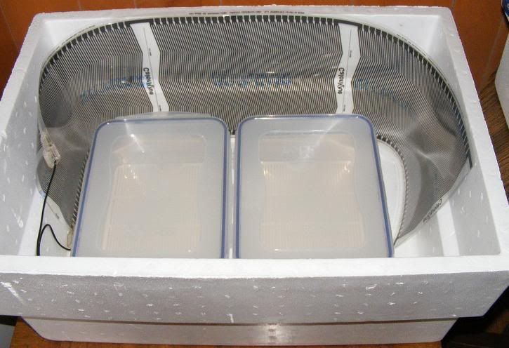 Here is what i came up with so far.. I bought the 3' of FW assuming we were getting a fridge, but if I could use the cooler.. is this an OK setup, or is the heat too lopsided being on only one side in a small area like this? it has a lid of course.