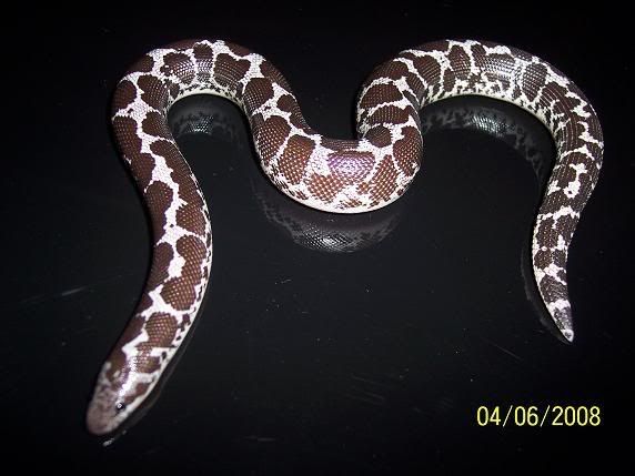 This guy was born 2/22/07 and is about 75 grams so he has a little ways to go before breeding. He is anery and poss het albino. He is also feeding on f/t small hoppers. I am asking for $100 plus shipping. I also have about 12 anery babies born this year in Feb. They are eating on live pinkies and have eaten at least 6 times. I am asking $60 for them and I have males and females available.