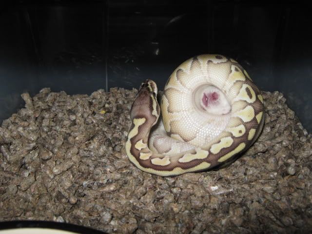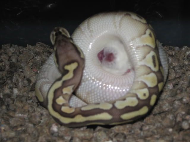 my pastel butter didn't even strike at this live rat pup.she waited till it came by her and just made like this tornado...looks cool
