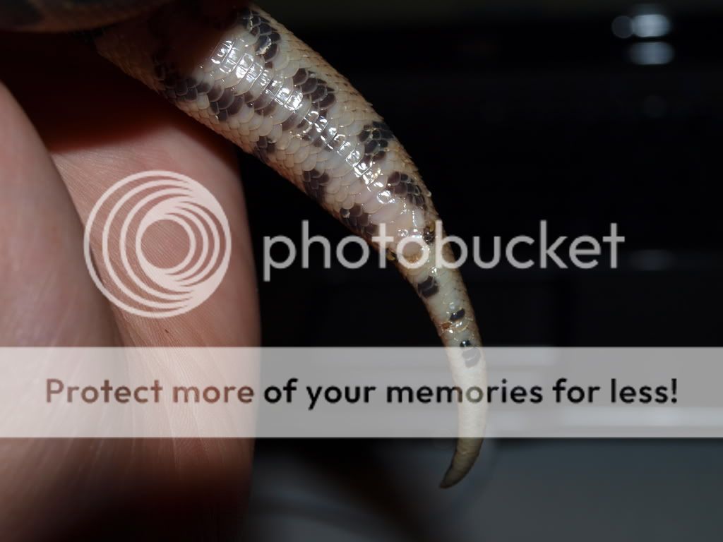Ok, so after many hours of watching videos on youtube, talking to experienced people, googling it, being shown exactly how to do it on webcam from an experienced person, and so on so fourth, i decided to pop Maxwell. I was a little nervous at first, but then i think i kinda got a feel for it and was able to apply a little more pressure, i had my right thumb directly above the vent, and was pulling back a little bit, i had my left thumb about halfway down the tail under the vent, i rolled my left thumb up until it reached the vent opening and some flesh showed up, it was pale pink and i could see 1 little hole. no hemipenes popped out at all. i tried a few more times and same result. im beginning to think that Maxwell may be a female? he/she is about 18 inches long, im not sure how old he/she is. some ppl have told me that you can kind of tell by seeing the tail, so i will attach some pics. (also on the pics you can see more of the little discolored uplifted scales, as mentioned in another post of mine) anyways, there are no reptile stores or anything here in my town, and there is no reptile vet, there are just some normal vets. so i cant go to a reptile store to get it probed or anything. i was just wondering how accurate popping is on ball pythons this small?