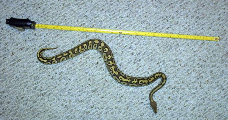 The spider might be a bit thin but I don't think he is too thin, an unhealthy thin. He is 763 grams and about 41" (using snake measurer). As for feeding, I got him on Thursday so won't feed him for the first time until Friday and I'm not sure how consistent of an eater he was for Scott.