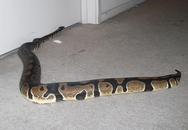 She's actually a sweetheart, but I've never owned such a large snake before - so Mona seems like a beast!! She ate her first meal (since arriving) on Saturday, so I decided to take her out tonight... ain't she purty?? :)