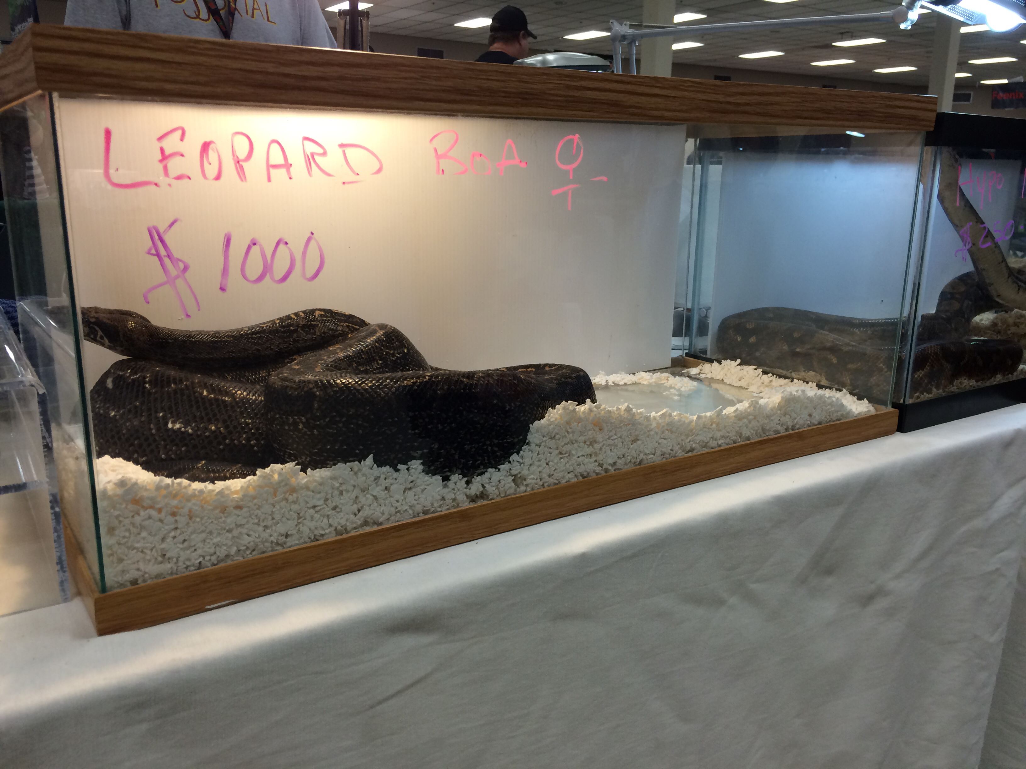 we always have 2-3 tables on dedicated Boa breeders. here's one w/ a Leopard Boa and Hypo Nic: