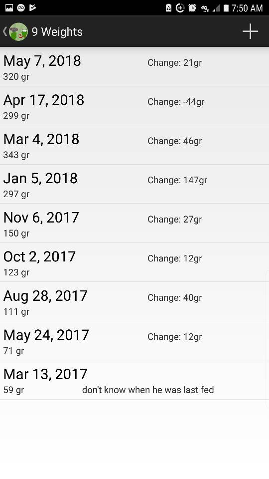 i only started feeding 2 large mice at the end of march, when i realized he hadn't shed out in a while even after i moved him to the large mice (i did not get a weight during this time). it was like once he hit 300g that 1 large mouse just wasn't enough. this was when i panicked and started trying to give him rats bc he was pacing so much and i'm an idiot and i haven't found appropriate sized mice near me.