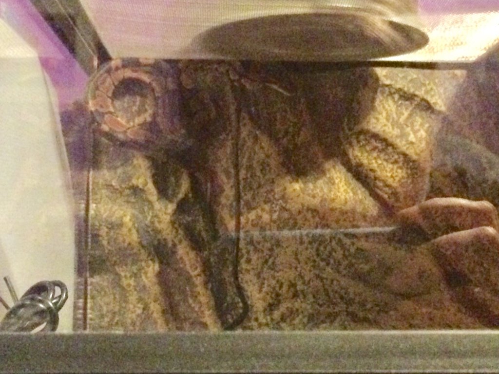 unrelated, but i noticed you don't have the sides of the glass covered with dark paper or fabric. covering all sides except the front will help him feel less exposed.