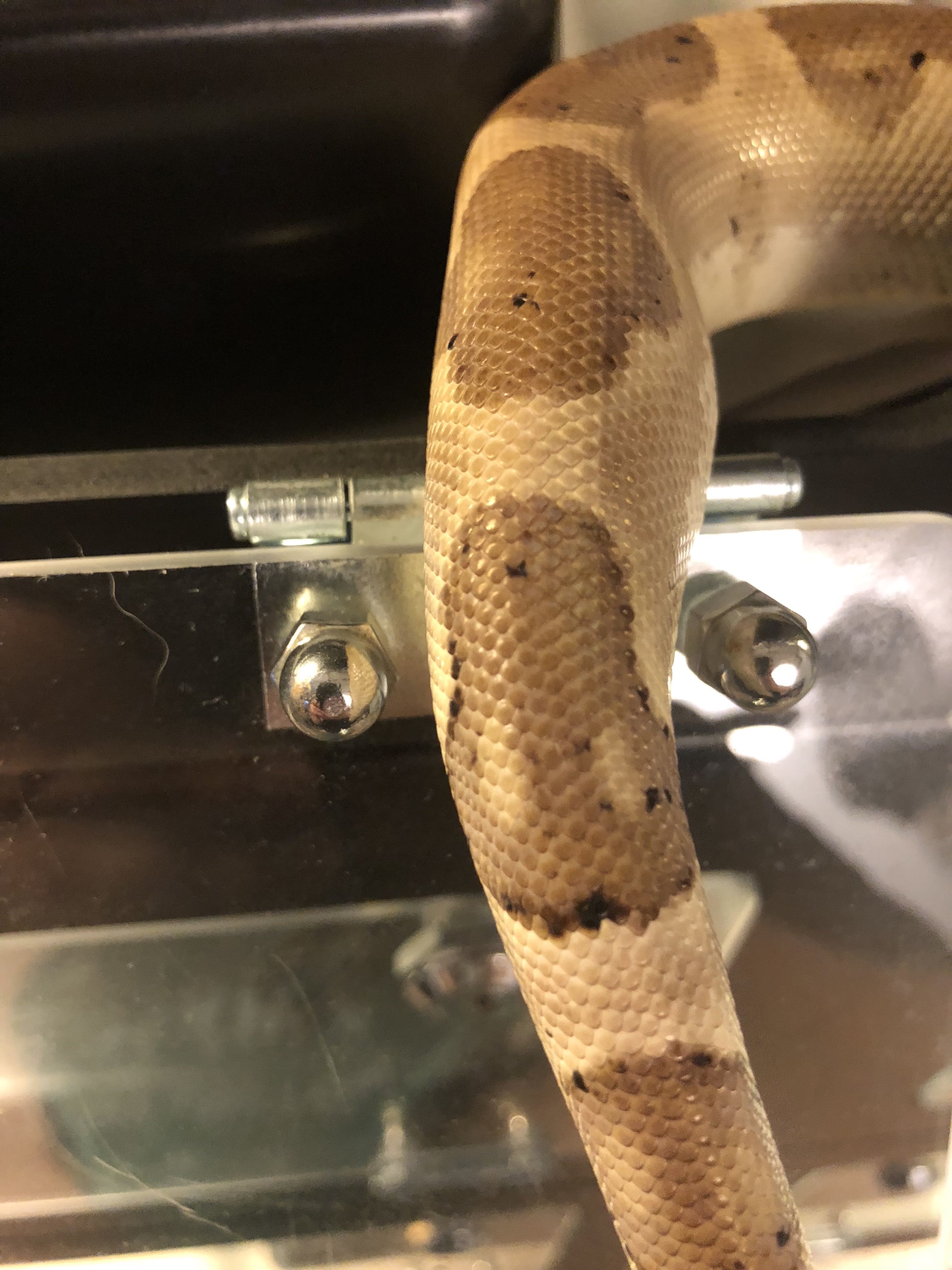 I fed Monday this week (usually Sunday) and took her out this evening. She was a wild woman tonight! All over the place. After a few minutes, she did calm down, but if she decided to head for the bookcase, the lamp, or anything else she set her mind to, and I tried to re-direct, it didn't go entirely smooth. A few times I pulled her back and tried to re-direct her and she would move her head and neck really quick, almost like she was having a tantrum. She would also fight me quite a bit! She's super strong, even at 1,050G, and I had to be really gentle not to upset or hurt her. To be clear, she showed ZERO AGGRESSION, she just wanted to go where she wanted to go.