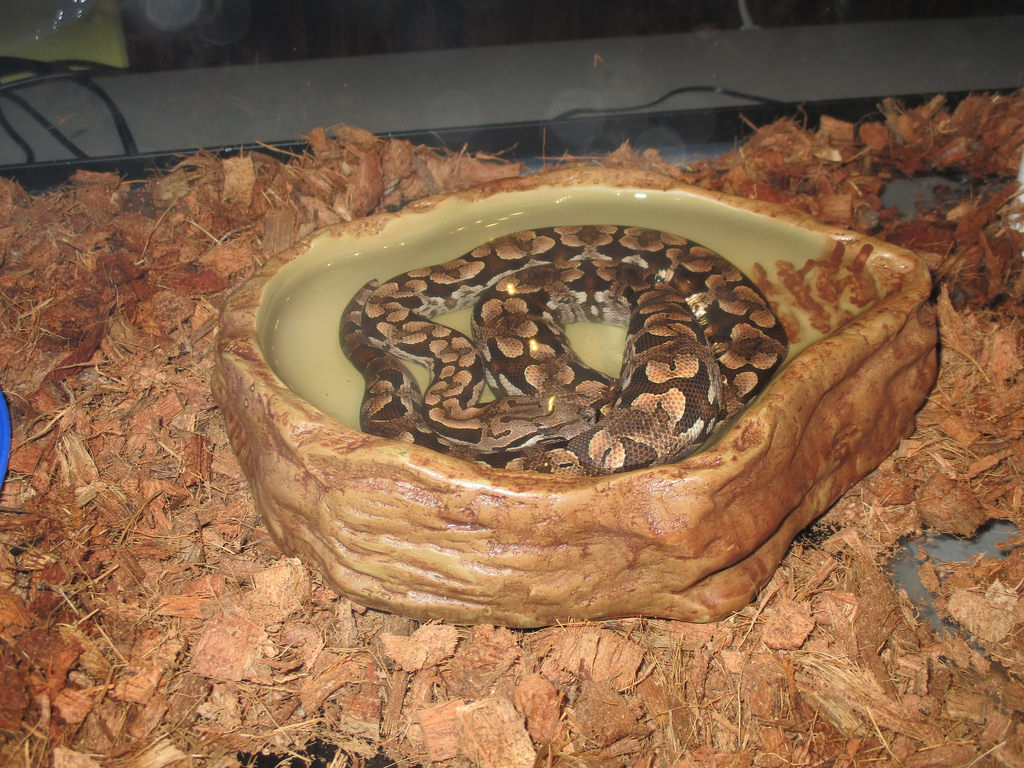 Here she is relaxing in the Jacuzzi while shedding lol. She's so small, she fits in the Exo Terra small water bowl. She's adorable haha.