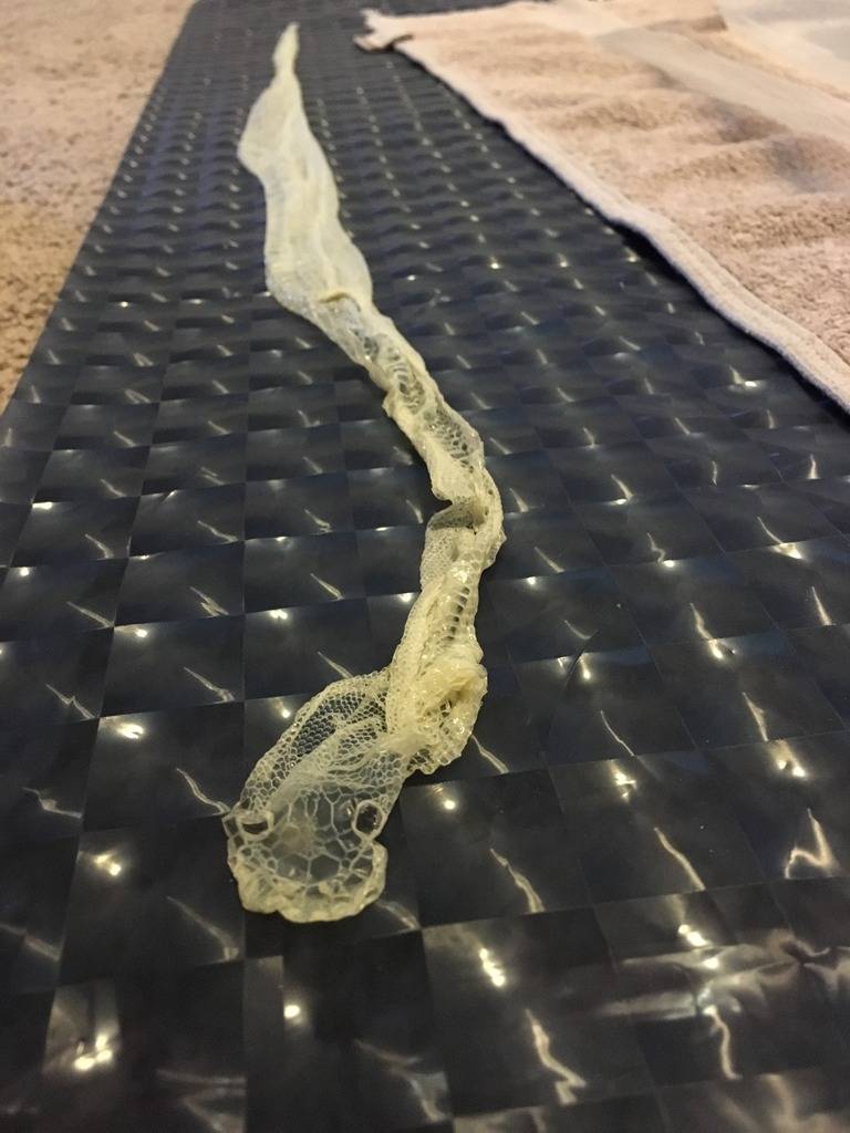 That was so cool. You can really see how hard she pushes herself against the side and bottom of the tub in the beginning. And then uses her muscles to "walk out" of her skin.