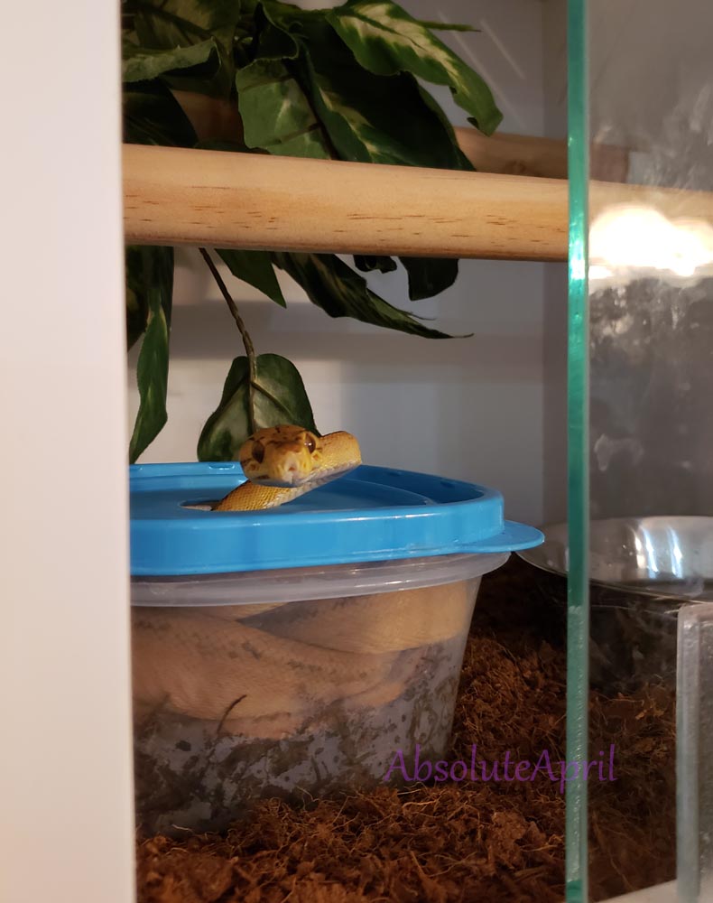 Aveline self-quarantining in her humid hide, warning me to stay 6' back haha