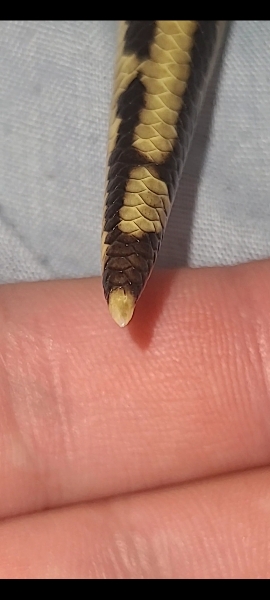 Also, it's normal for the ends of their tails to feel stiffer/sharper/pointier as they age! I think the pointy tail actually helps them hold onto things because my ball python will sometimes dig the pointy end of his tail into me or whatever he is holding onto for a better grip.