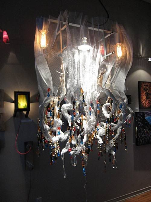 One of the last 2 things I built (for a show) were these lights... from discarded and found objects (and snakes skins)...