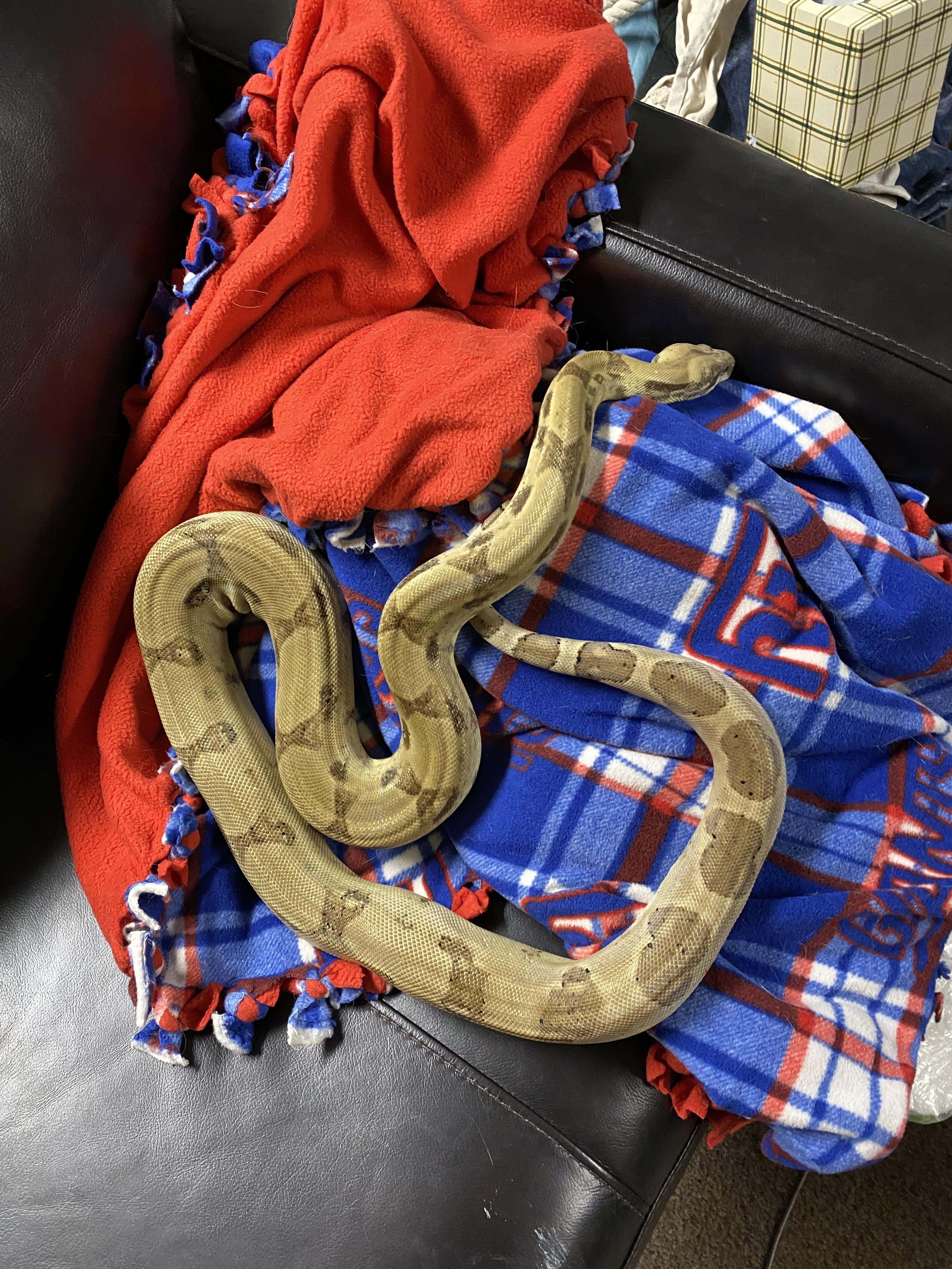 ...That little "play basket" I made for the boas the other week is quickly becoming a valuable tool! They're both perfectly content to sit in it while I clean cages (or their nose!).