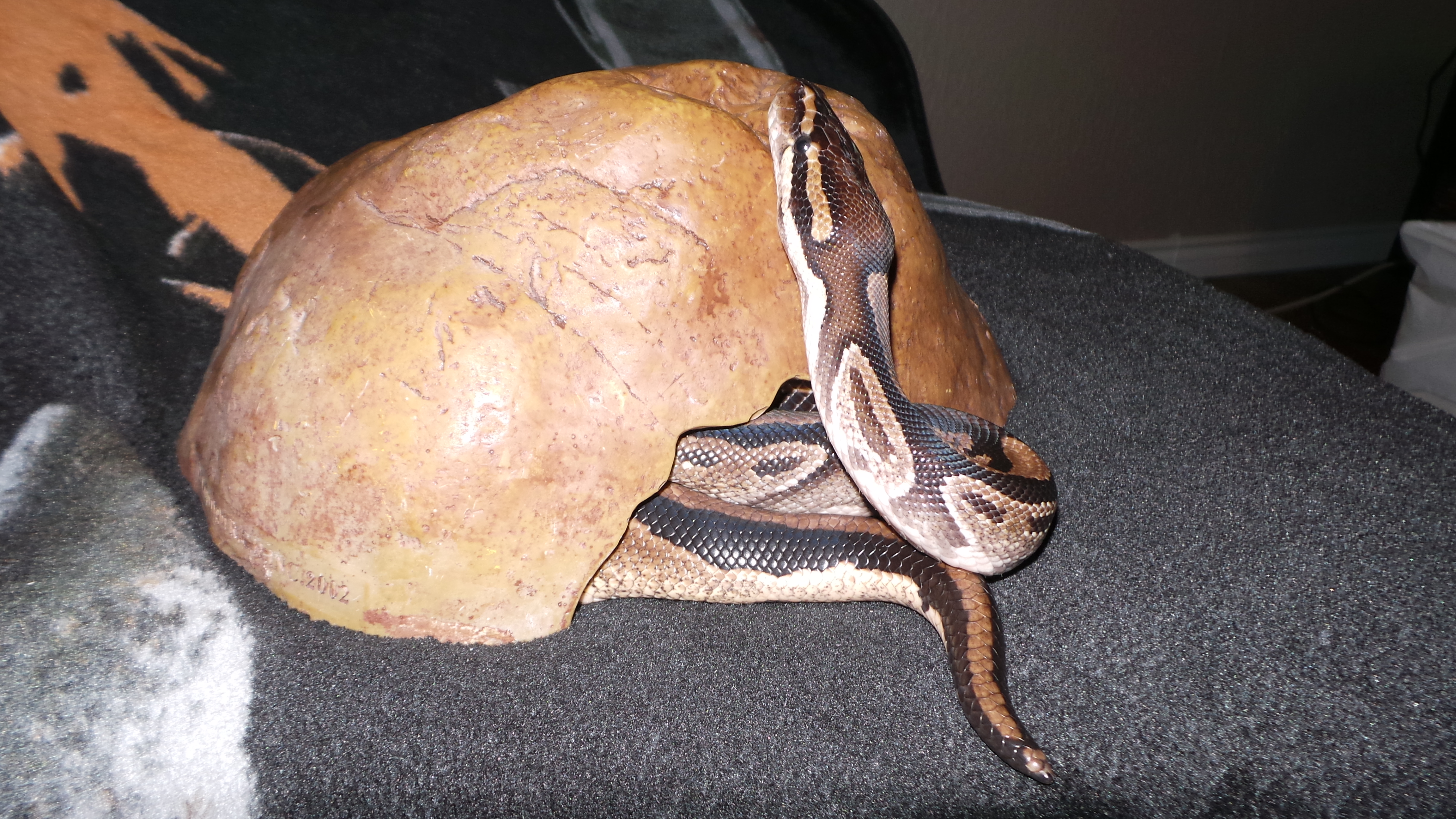 Crowley "hugs" his hide when he wants to stay in there, he often does this to show me he wants to stay, he'll do that or slowly reverse back a little to tell me he doesn't want to come out. My snake has such good communication skills for something without vocal chords. 100% of the time when he hugs his hide like that he doesn't want to come out till maybe later. This time he did it on the couch in his hide, I think he liked that I put a heat pad under there.