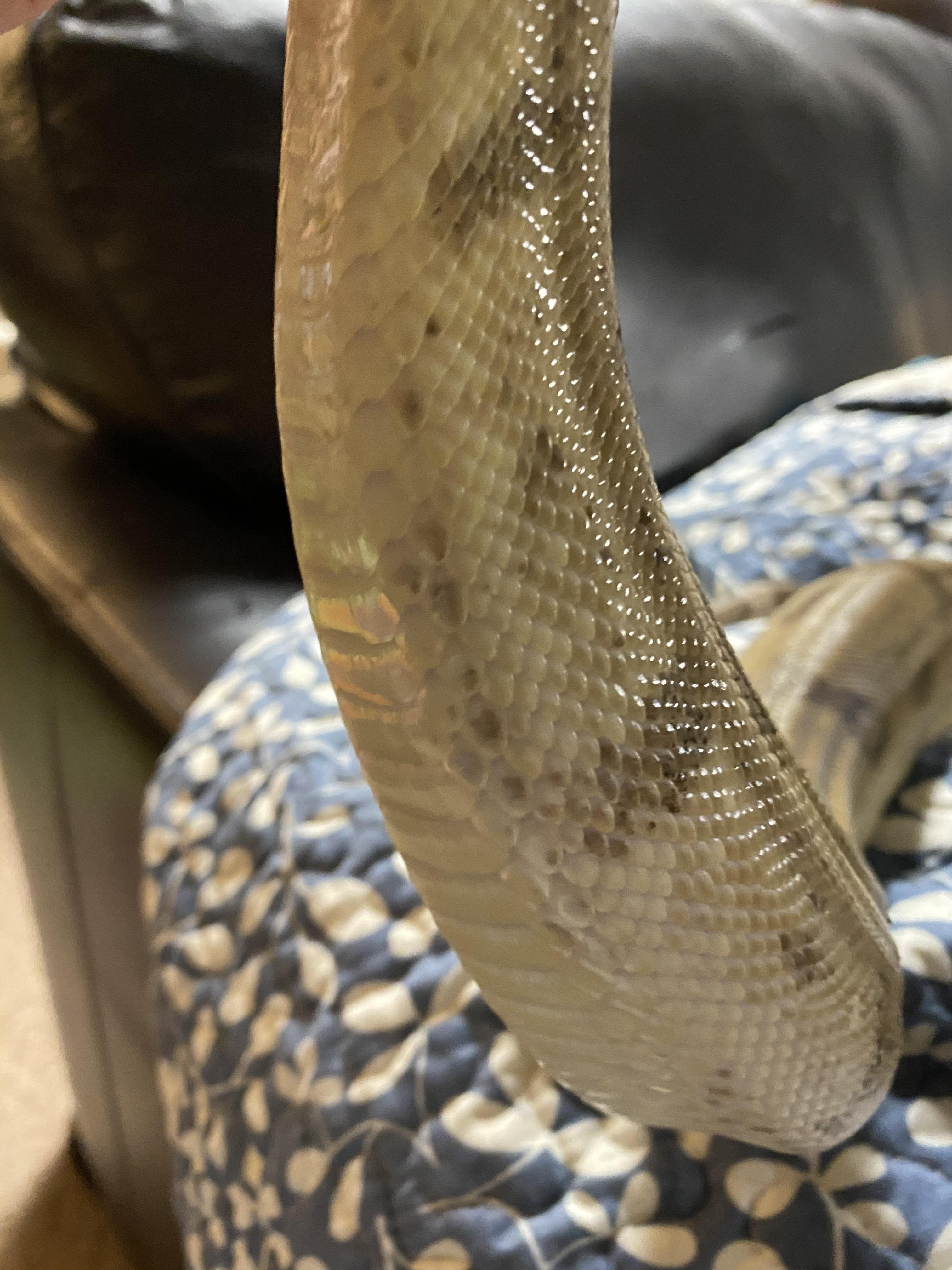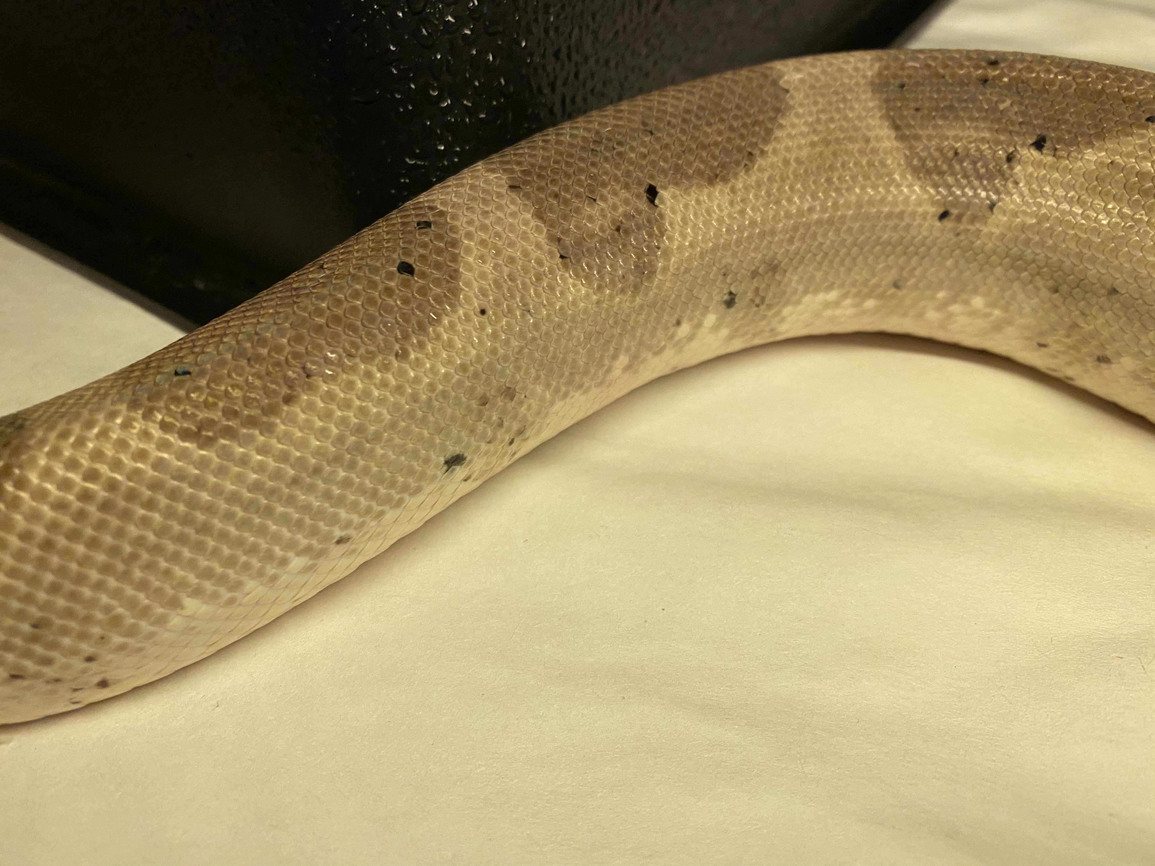 I took some pictures, but you have to look for the redness. There is a little on her underside near her tail and a tiny bit on her side near the tail too. However, it's about 80-90% less than last shed, if I can quantify it. I think this is a really good sign. Irritation appears to be going down.