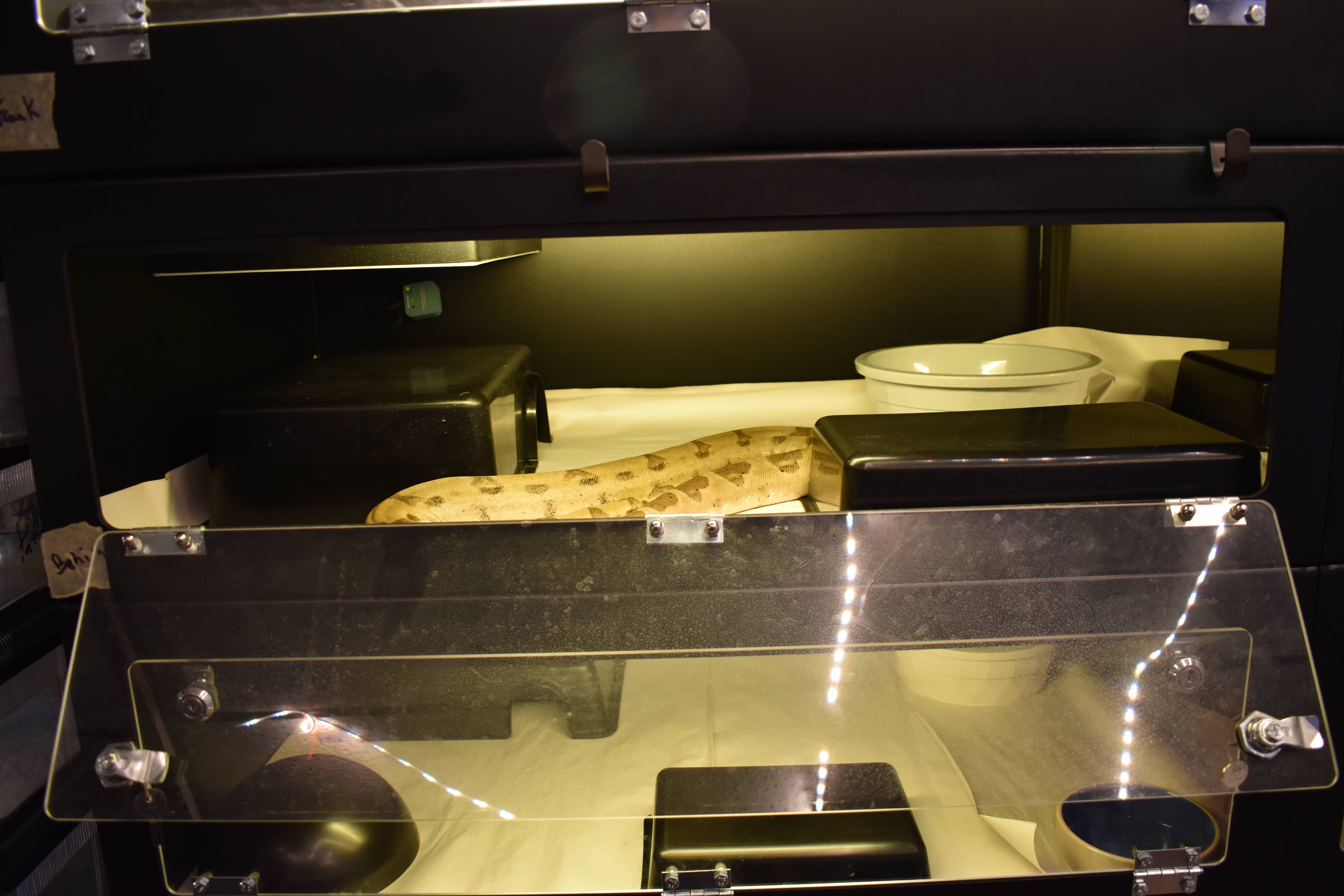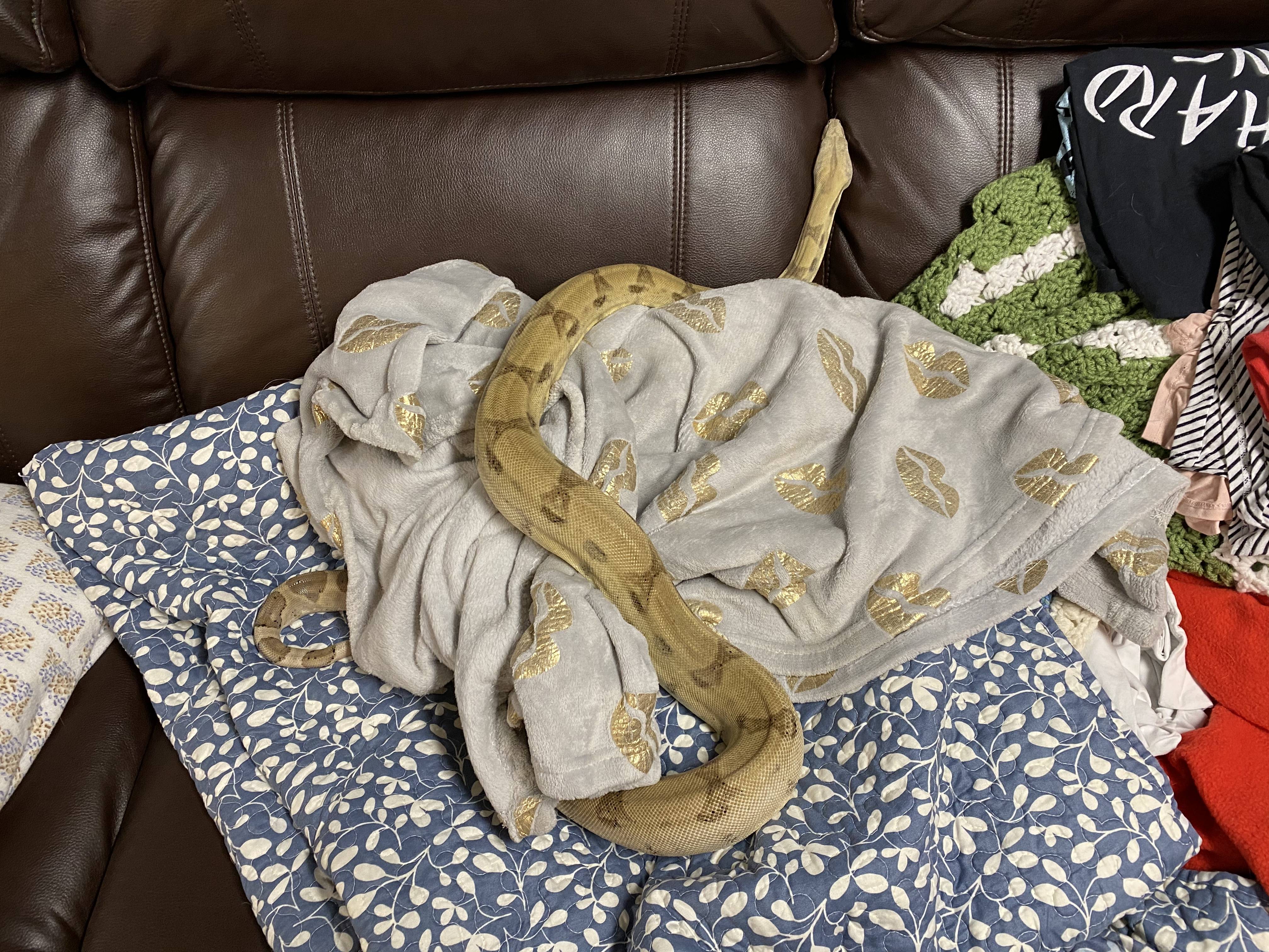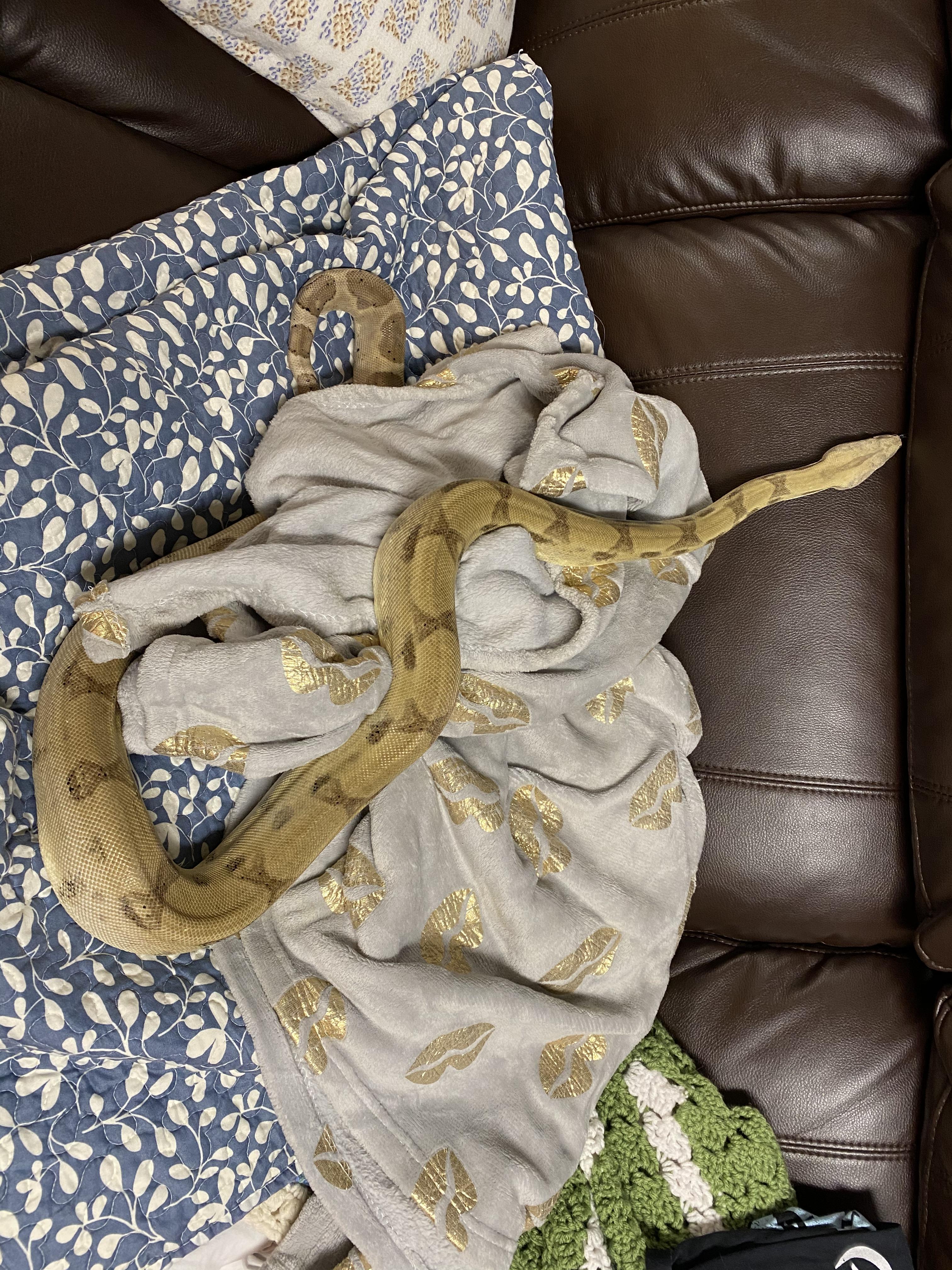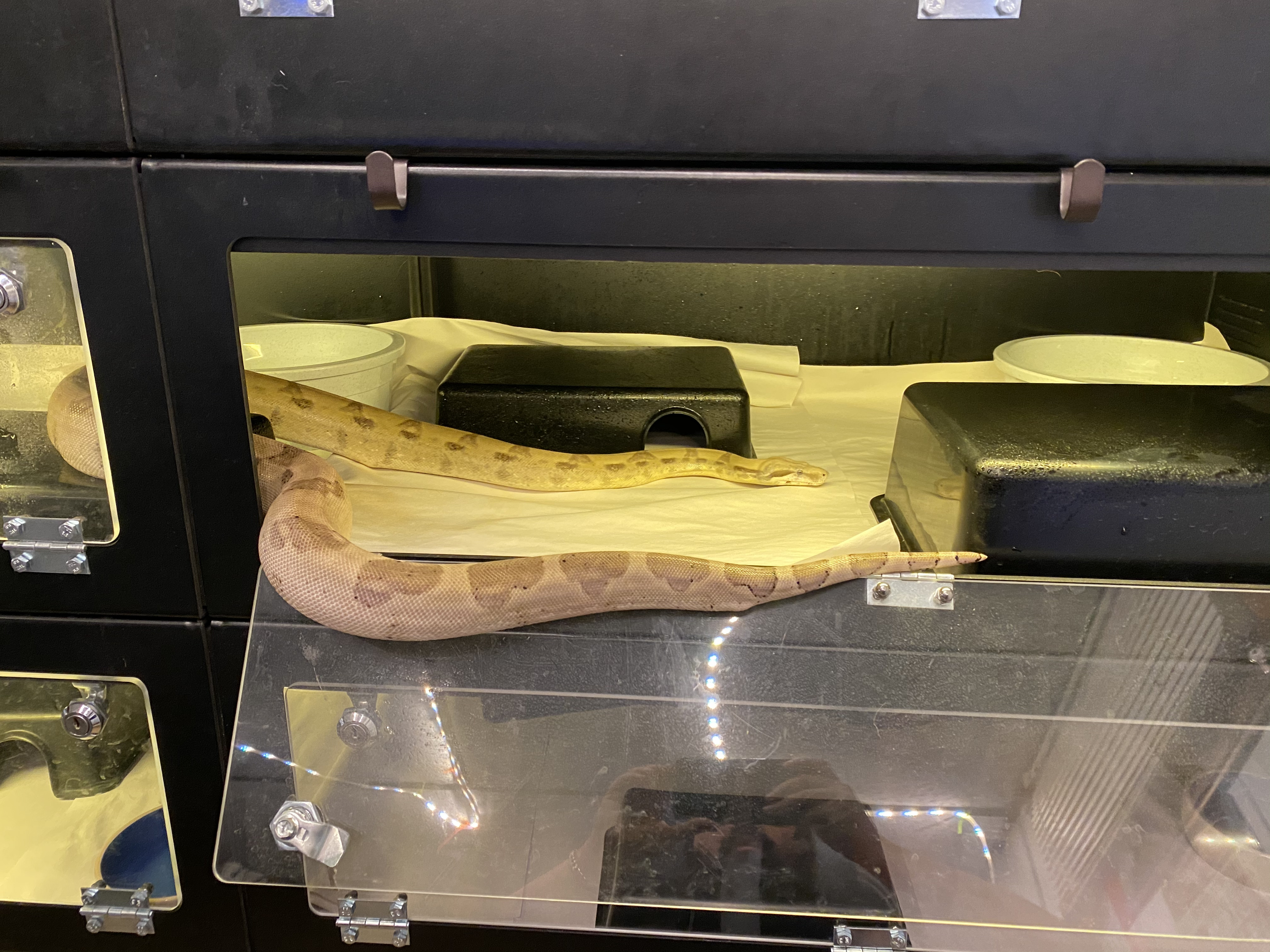 I had Behira out for a bit today. It's been 13 days since she shed last, and she is doing well. She's been gobbling down rats every 10 days and is growing like a weed, from what I can see, and from what her last weight said.