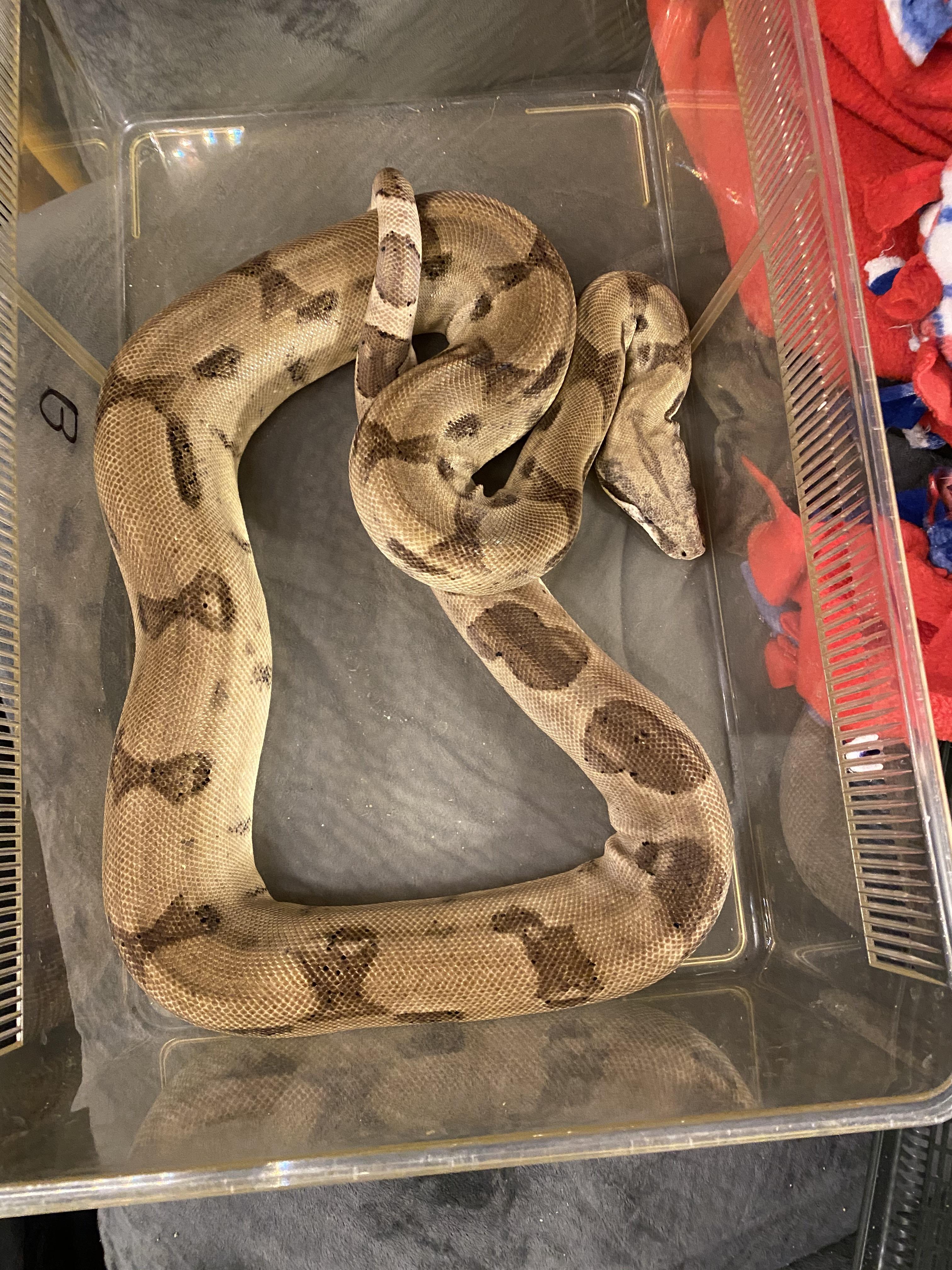 I also had her out earlier today and we spent some quality time. When I put her back I got a few shots of how she's really starting to fill out her tank. She still has a ways to go, but these show her in one side of her 6X2' Boaphile, or a 3X2' floorspace.