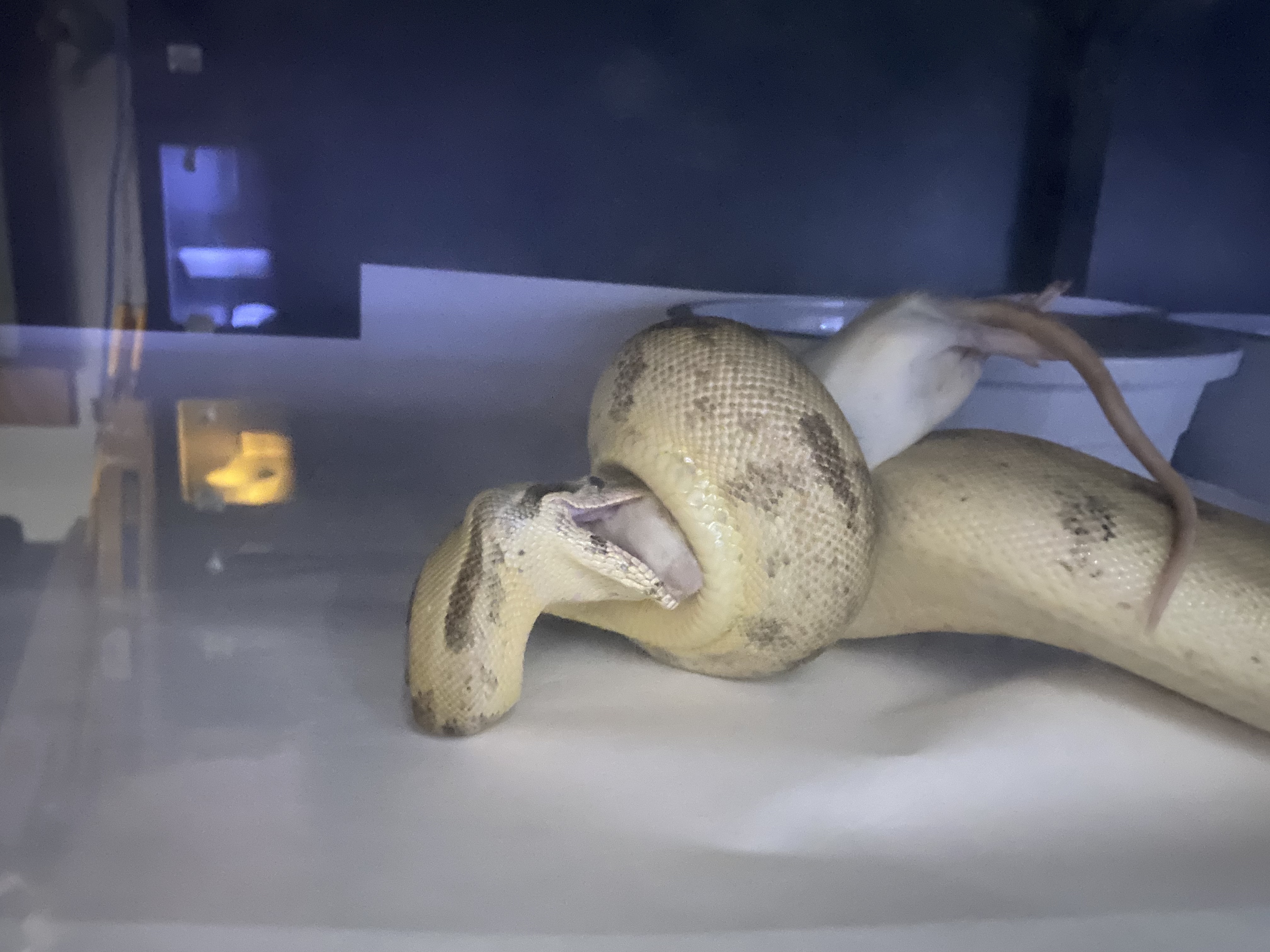 Jeff Ronne agreed she looked very healthy and that large rats would make her grow "a lot," but I am not breeding her and she's healthy and growing on mediums. For now, I will stick to medium rats.
