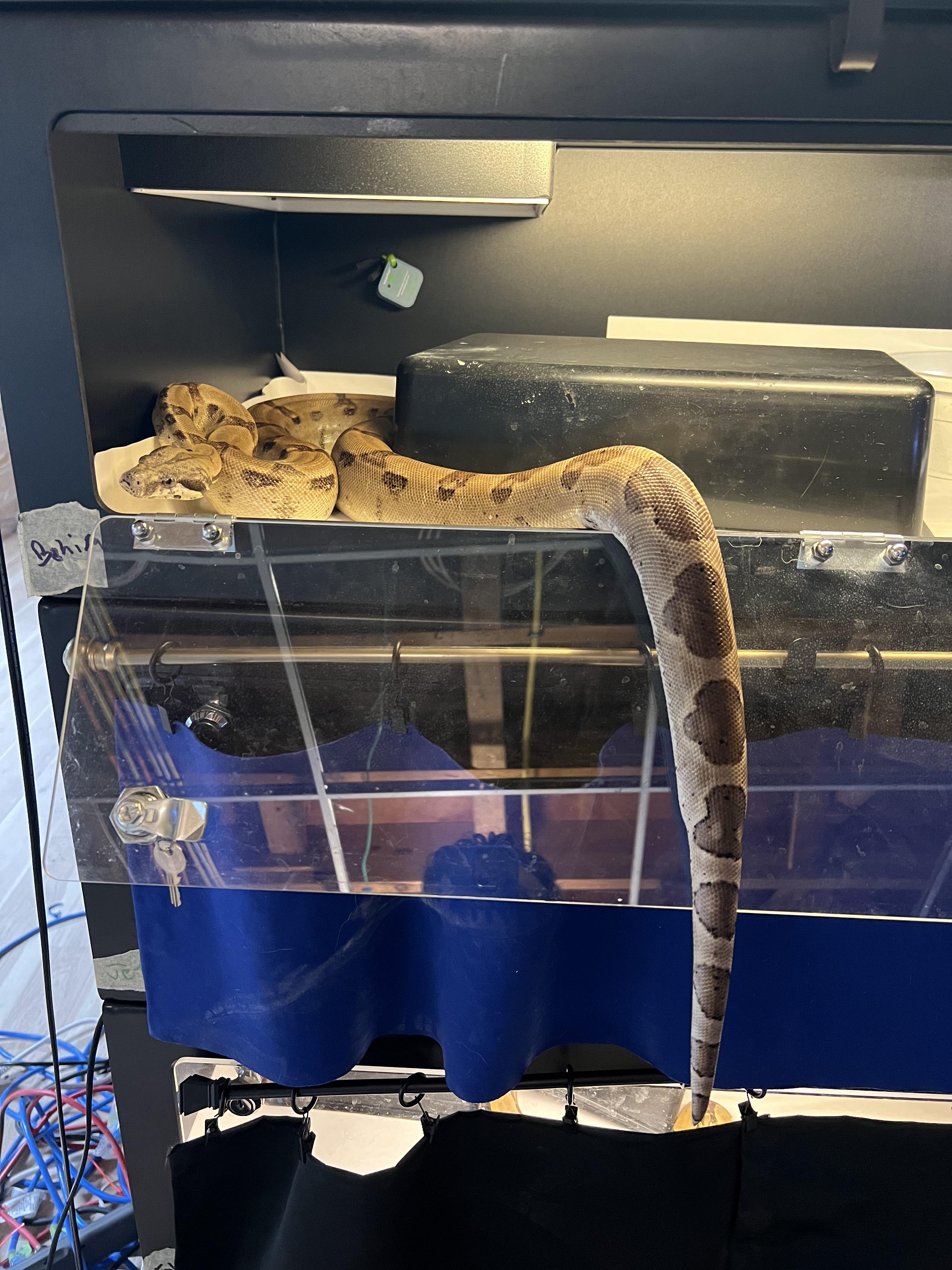 Meanwhile, Behira nailed a medium rat tonight and is looking a little darker. Not too close to shed yet, but I think she might be getting there in the next few weeks. No sweat, her last shed was over 3 months ago and she's been eating more regularly now that the basement/reptile area major work is done (and the rest is getting close). So relieved she's back to a normal shed schedule. My "baby" had me worried for a bit.
