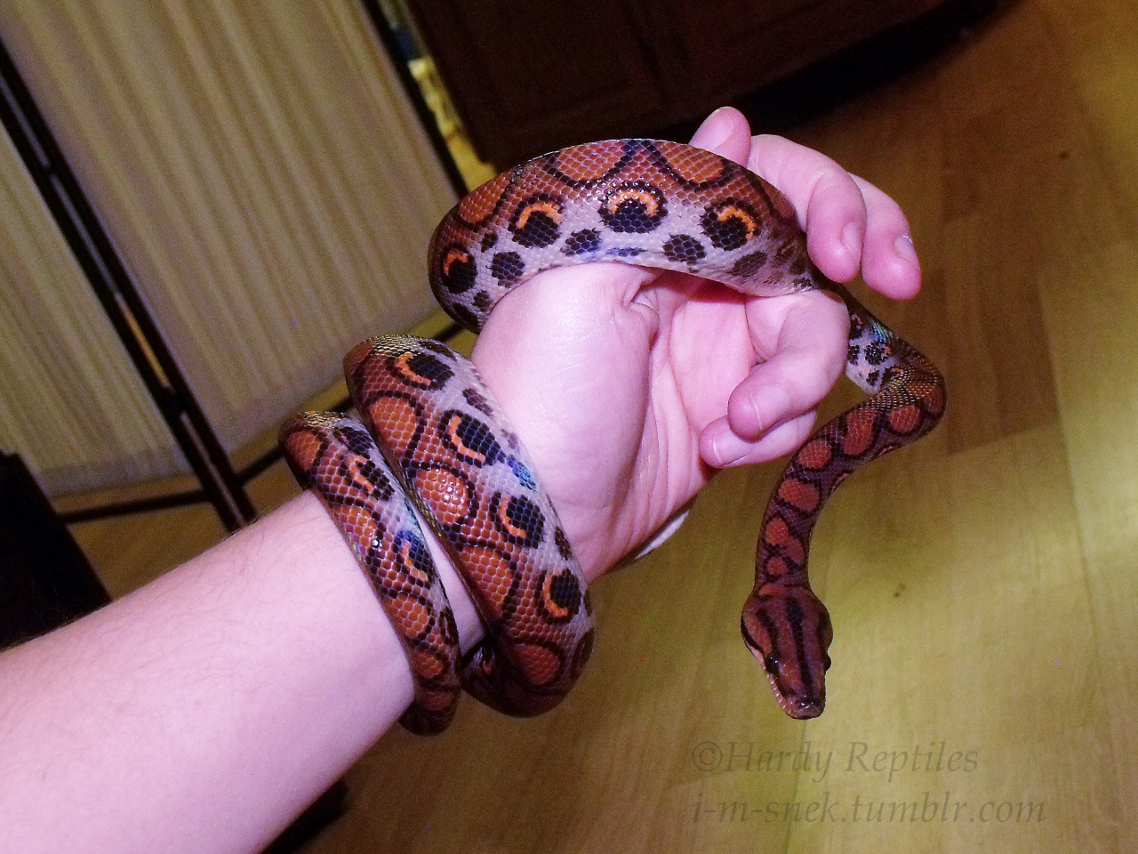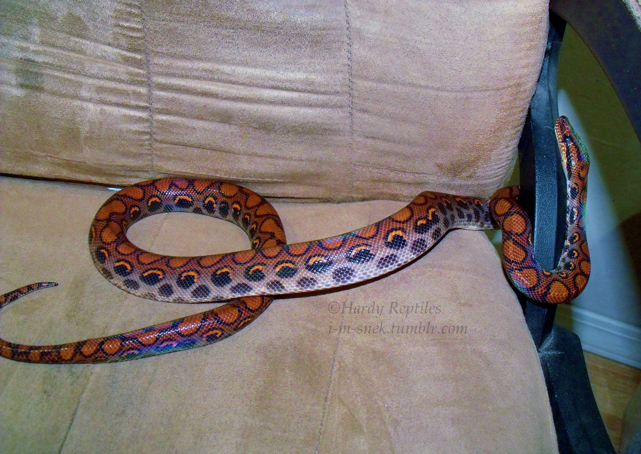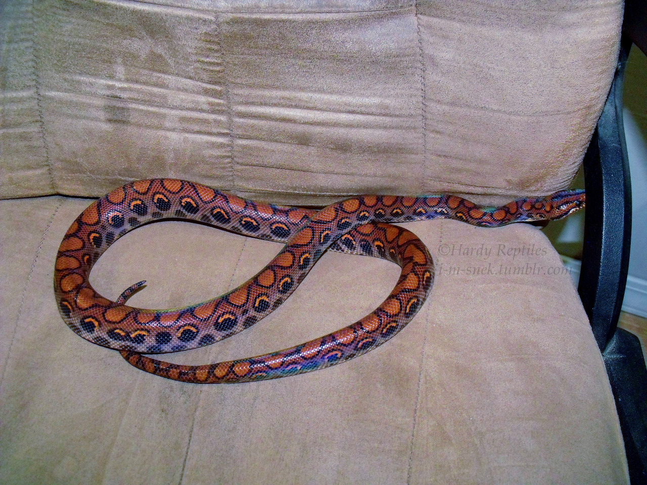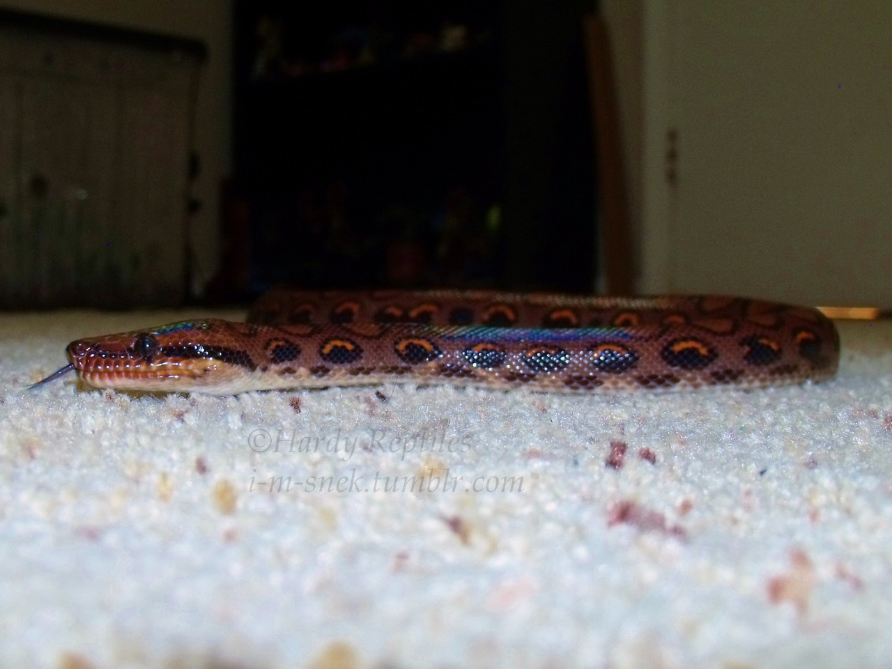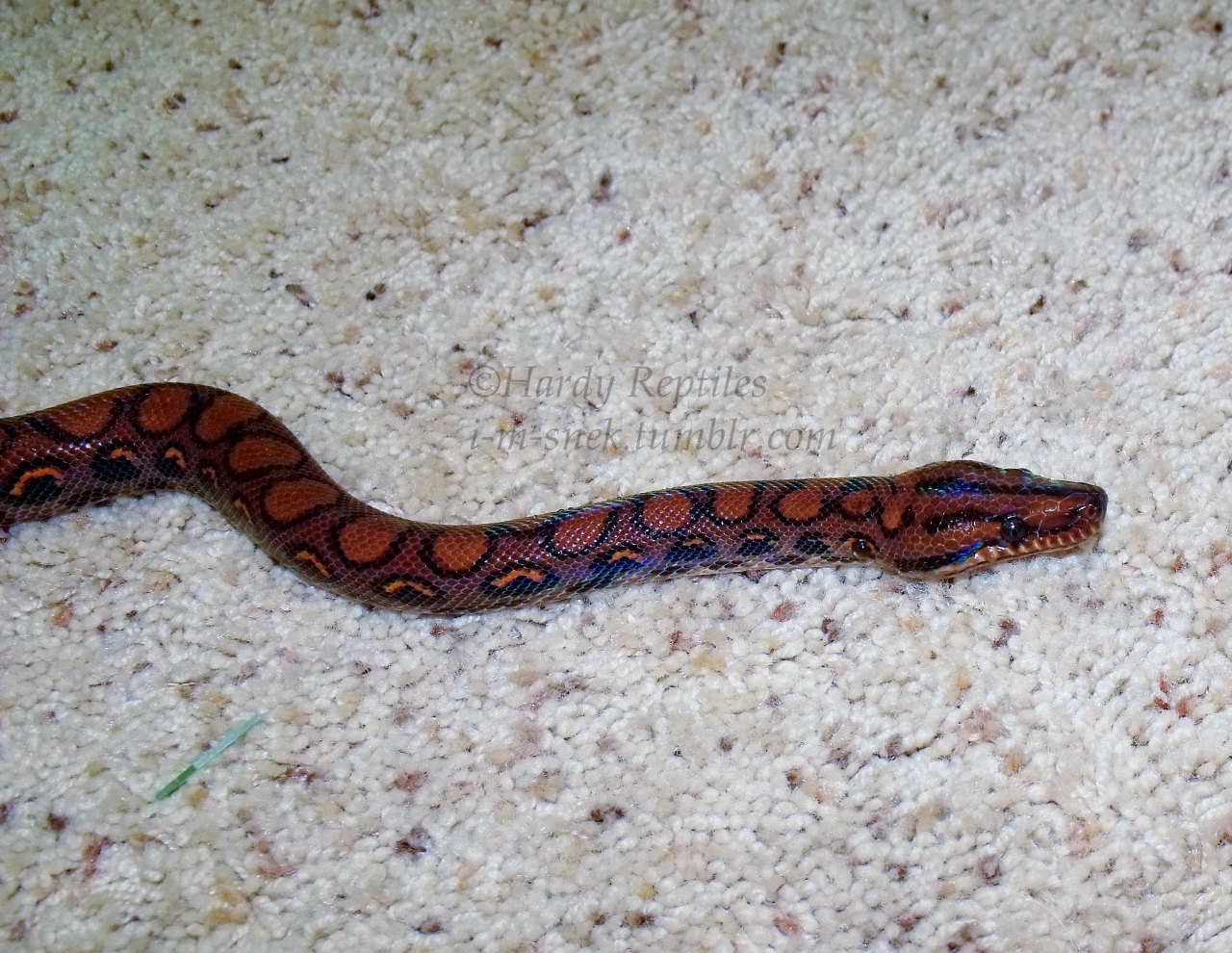 I picked up a young, male, three weeks ago. The previous owner had his hands full - lots of animals and not a lot of time so I assisted by taking the guy off his hands (been wanting one for a long time). I was told that he was difficult to handle but that is not the case. He is fast and moves so much more than my BP, boa or Jungle Carpet - you have to really keep an eye (and hands) on him. I also have found that 4 is the ideal number of snakes (for me) as that many seems to keep me busy, feeding, cleaning, changing water and, the best part, handling.