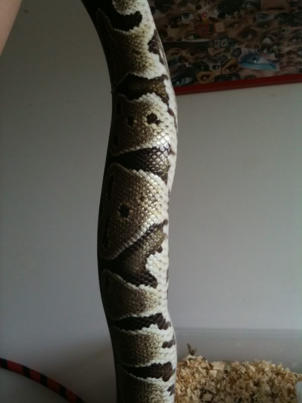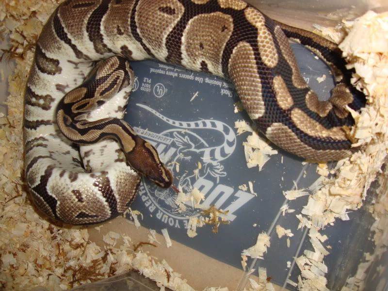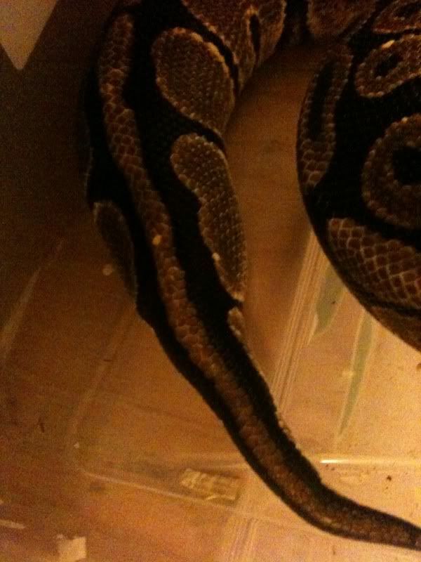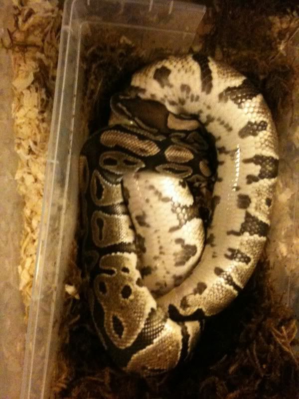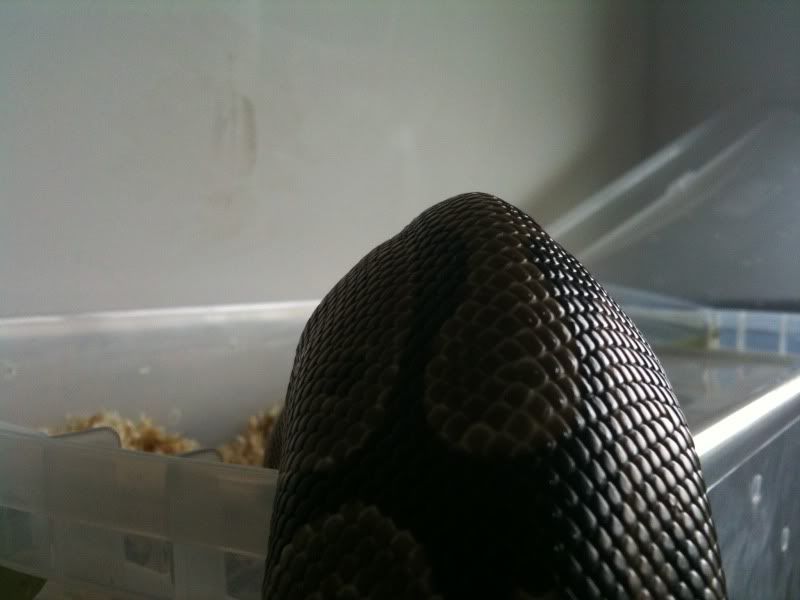 the snake in question is by no means lethargic, when i opened her bin to move her earlier her head immediately looked up at me, and since i've moved her she's been cruising around her tub. i have some more photos of her laying upside down from a few days ago, unfortunately they're crummy iphone photos. i'll post them up in a second.