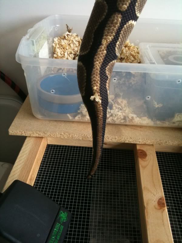 i have moved her out of the rack and onto a heat pad w/ reptitemp thermostat. i've upped her temps to 90, hoping to get her lay box nice and warm.