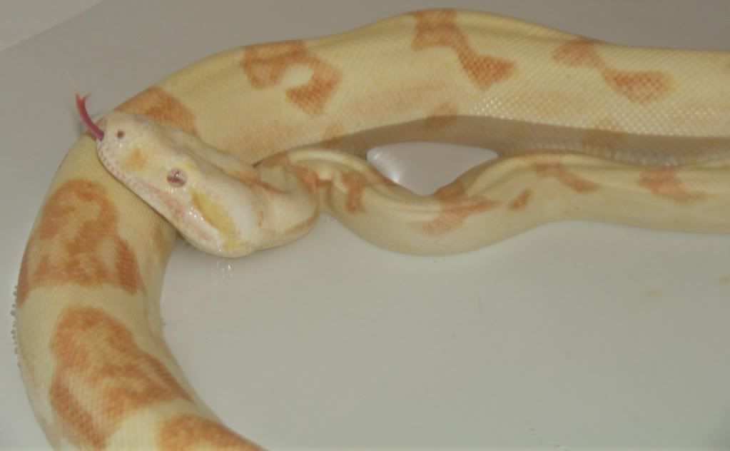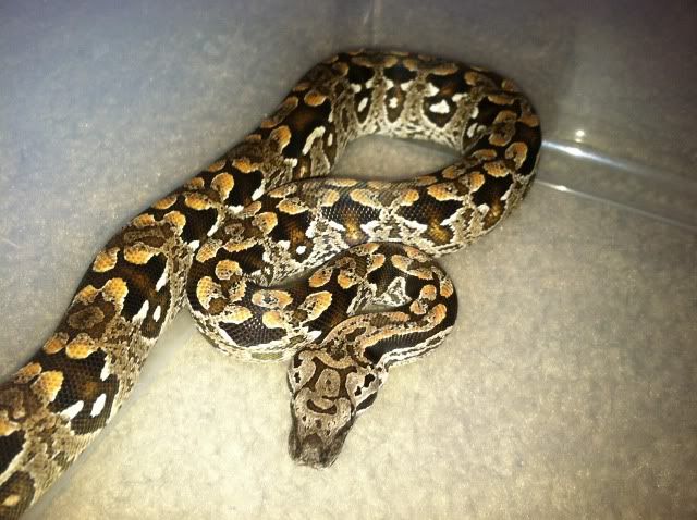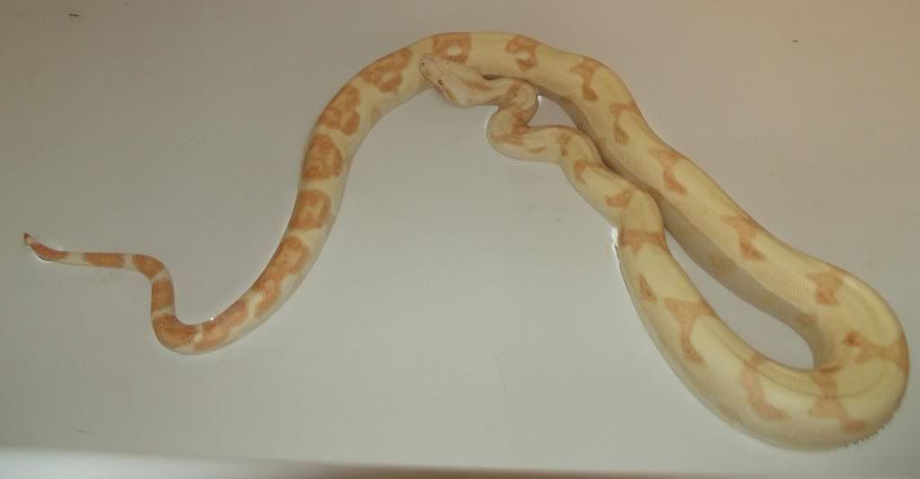 This is the only picture I have of my baby since I don't have him at home with me yet. He is at the shop being treated for RI. I was told he was a hypo red tail? I don't know much about boas, I just knew he was beautiful and at a good price lol