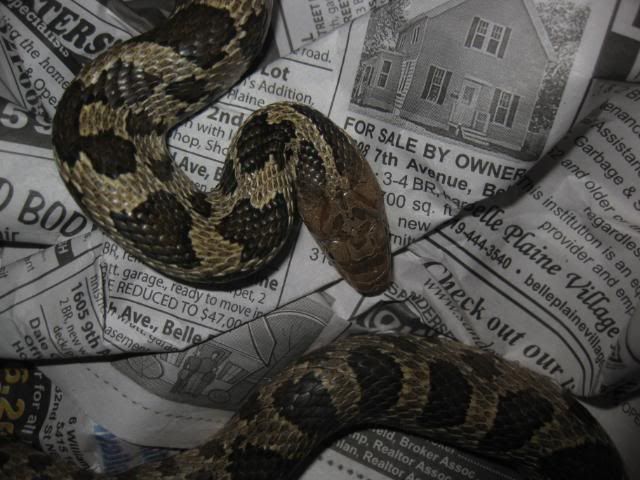 I was thinking, oh please don't tell me he's a corn snake because I let him go this morning, lol. When I looked up the fox snake on Iowa's environmental site I read that it was a protected species and it's illegal to kill or collect the snake...but I was hoping that if I got caught I wouldn't be in too much trouble since I was planning to let him loose somewhere safe! I am glad I took him because he was rattling his tail and I'm sure people would have killed him in a heart beat!