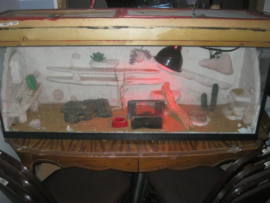 here is one i did for my ball python a few weeks ago, it melamine with a tempered glass front and half of the top is hinged so it can open, also has a light fixture installed inside with all wiring ran through the wood.