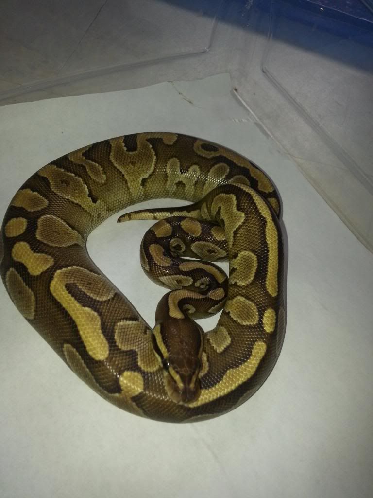 She's 300g and soooo yellow and blushy. Is that from the het influence? Cell pics don't do her justice. I know most prefer reduced, but I like busy patterns :)