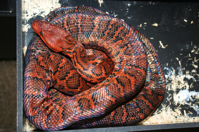The females get sizable, but the males stay a fair bit smaller. They have a profile similar to a carpet python and the sheen of a rainbow boa. They are quite docile, but occasionally musk when younger.