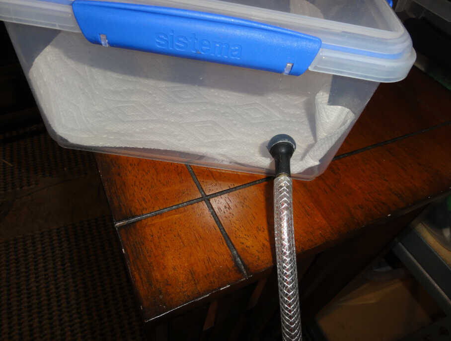 The next item you need is a universal fill adapter. This is basically the hose you will thread on to the CO2 cannister to administer the gas. You can find this at the paintball store or online if there is no store like that around you. The guy at the place I go to knew exactly what I needed and told me I wasn't the first person in there looking for this in order to make a gas chamber.