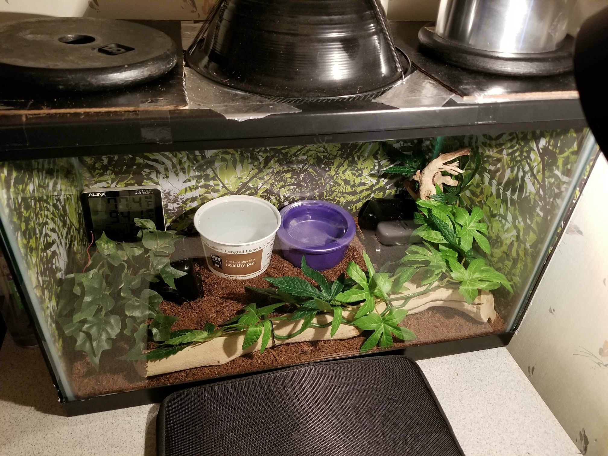 And no i'm not going to use a tub. First off I got this tank cause it's what a lot of people use, and it gives him the best amount of space and allows me to create a more natural environment. Second off I spent a lot of money on this terrarium and am not going to waste it, it's a very nice terrarium. And it's also appropriately sized.