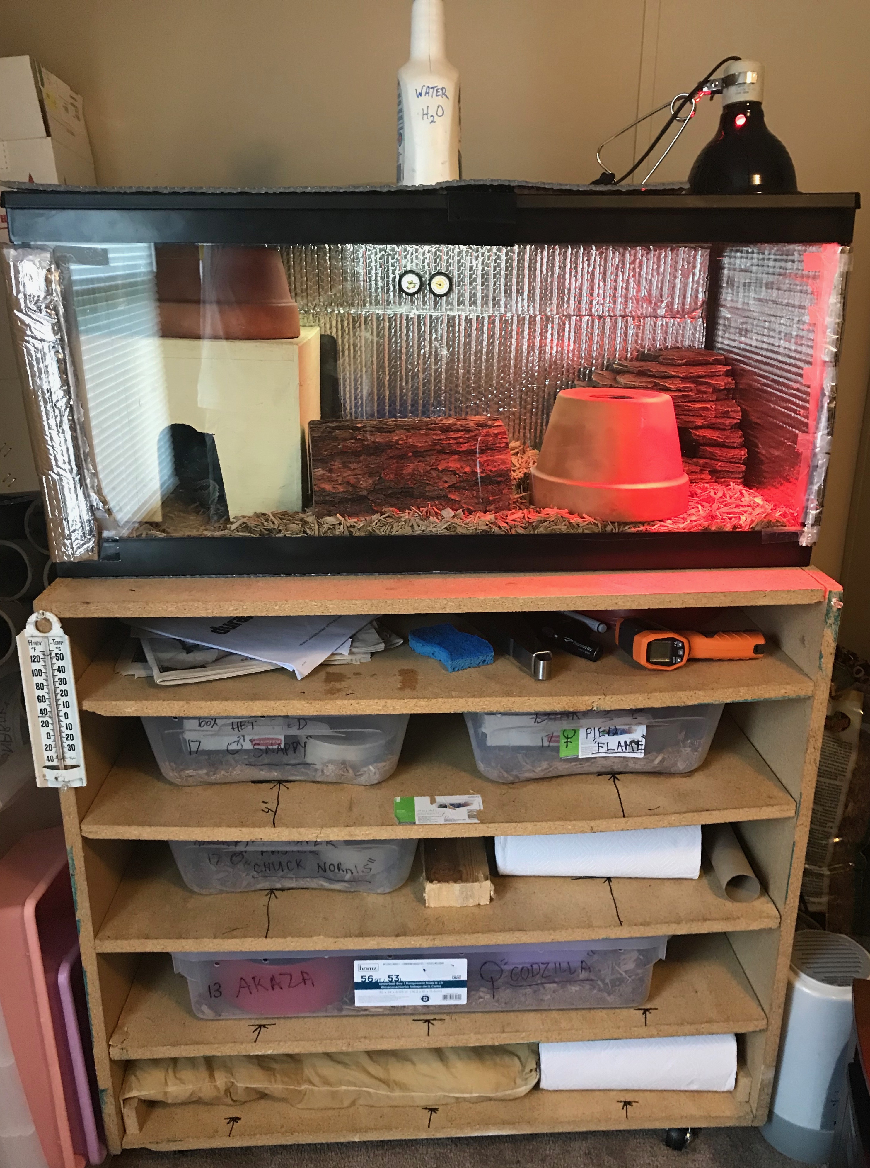 That said, no cheap shots on people who provide minimal racks (ex. no hides, just a water dish, heating, and paper towel). I agree surviving and thriving are two different states, and I do personally believe enrichment like hides and clutter is, well, enriching - but these guys seem to do just fine in minimal rack systems.