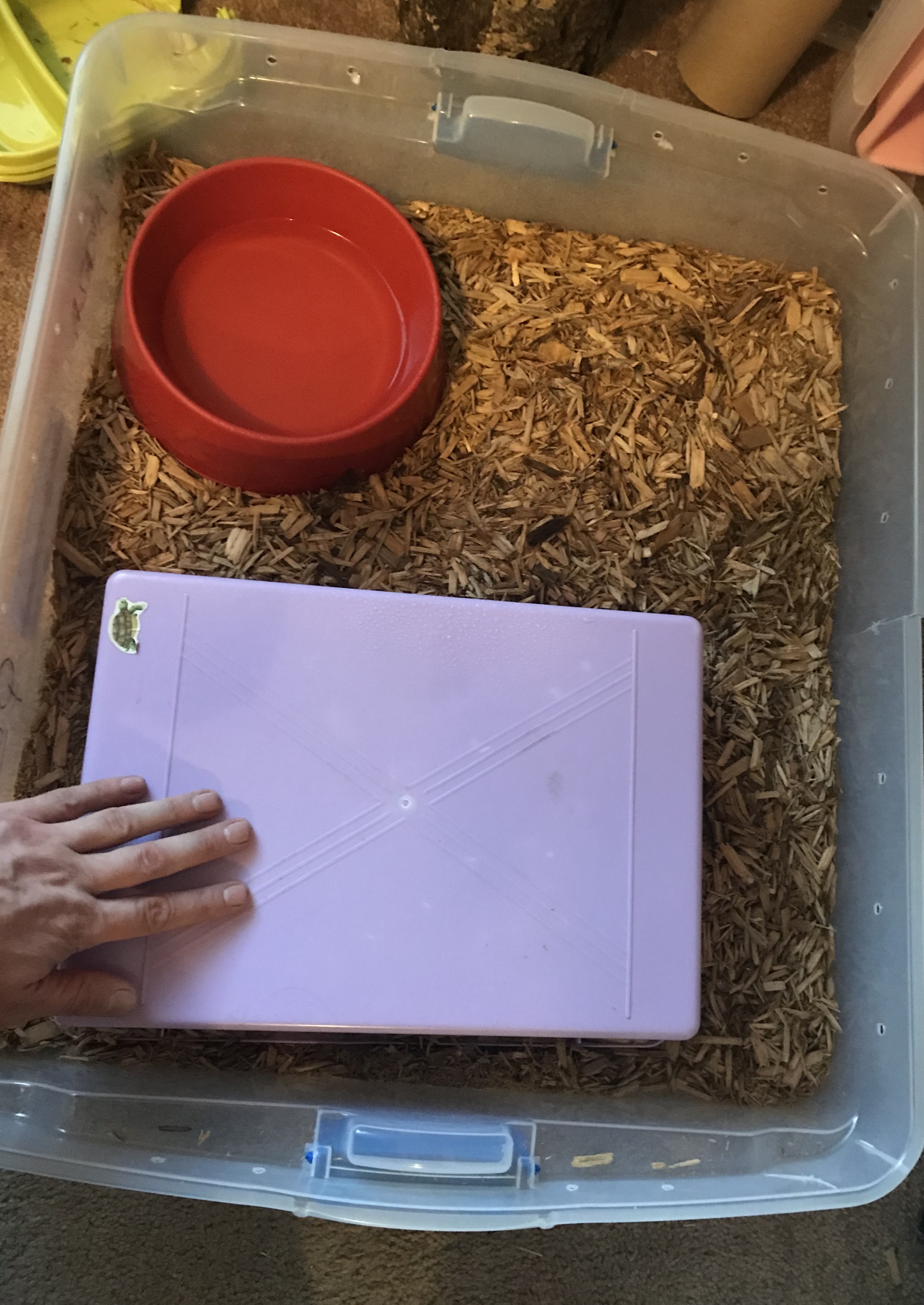 Here is a juvenile female in her medium tub (33 quart I think? below)