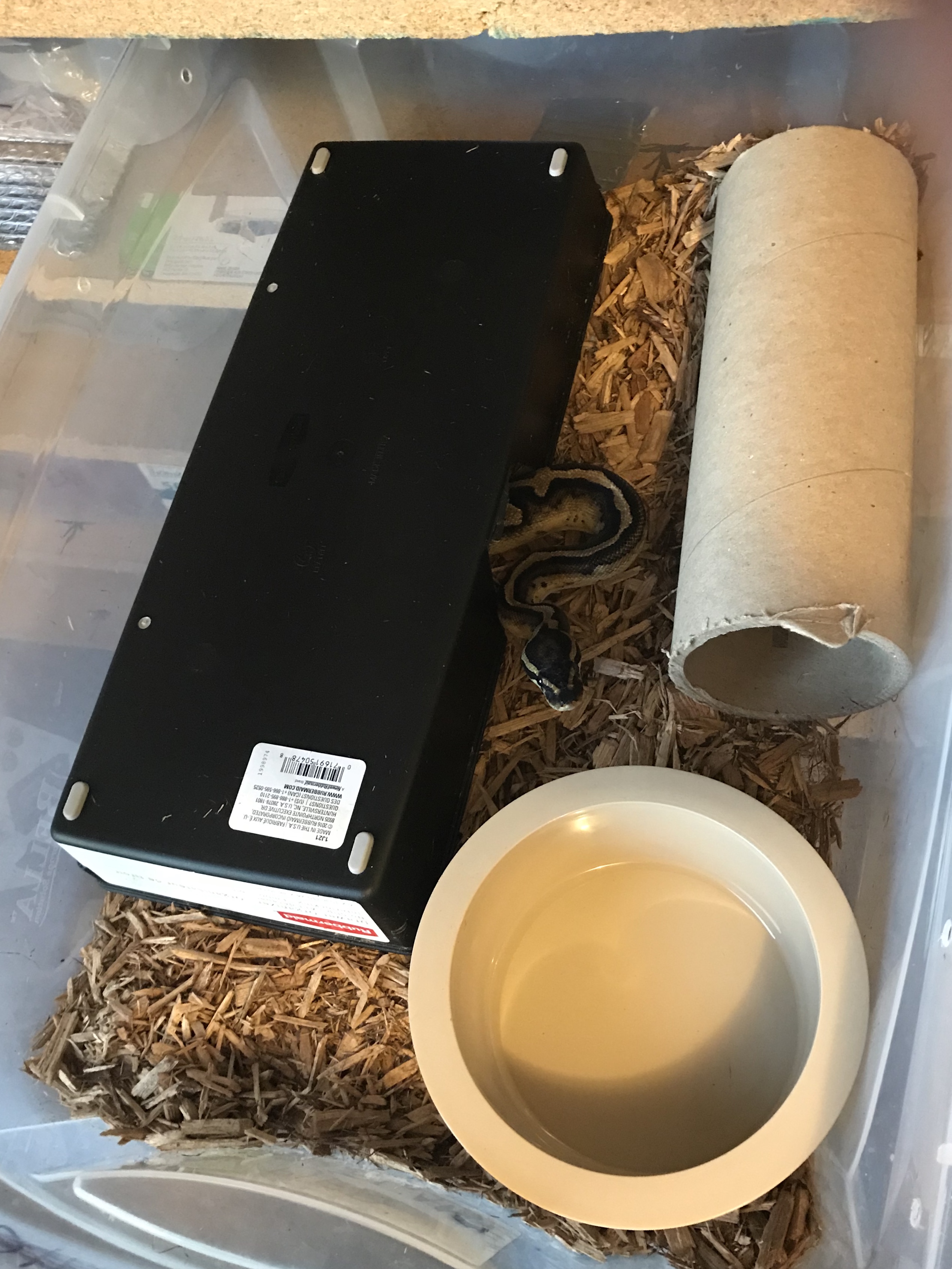 The tubs I keep my snakes in are set up like a tank enclosure. They have substrate, natural hides, water, and plant clutter. Just because it's a tub doesn't mean it has to be newspaper and no hides, which is the impression I get from most people who are against them. I believe rack systems are the best way to house ball pythons, not due to time and space (although those are nice bonuses), but because I've seen the difference of a snake in a tank vs tub, and 90% of the time they seem healthier and less stressed when they're in the tub.