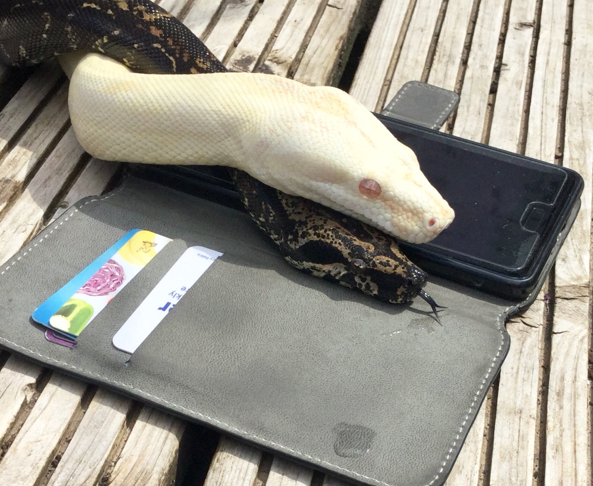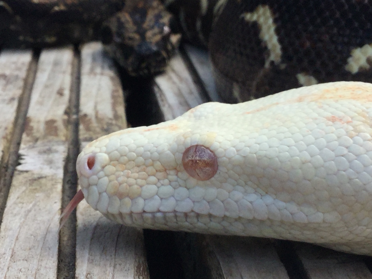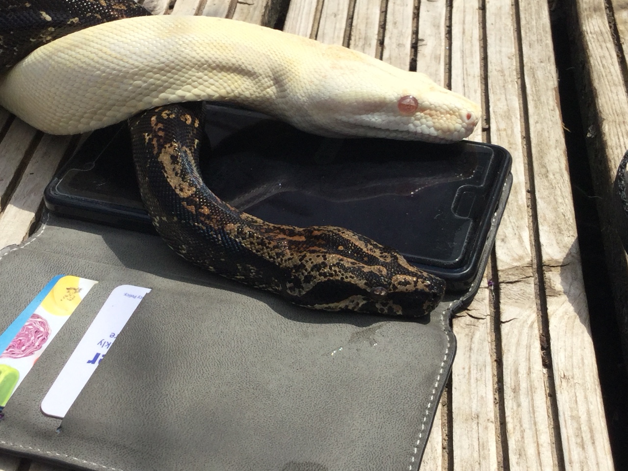 I had my Kahl albino and my Hypo img out for a few photos this afternoon to show how dark she is getting, Kahlos is 10years old and my Hypo img is 2.5yrs old , they just wanted to crawl about on the deck and would really keep still, they kept putting the tips of the tail in between the cracks for some anchor