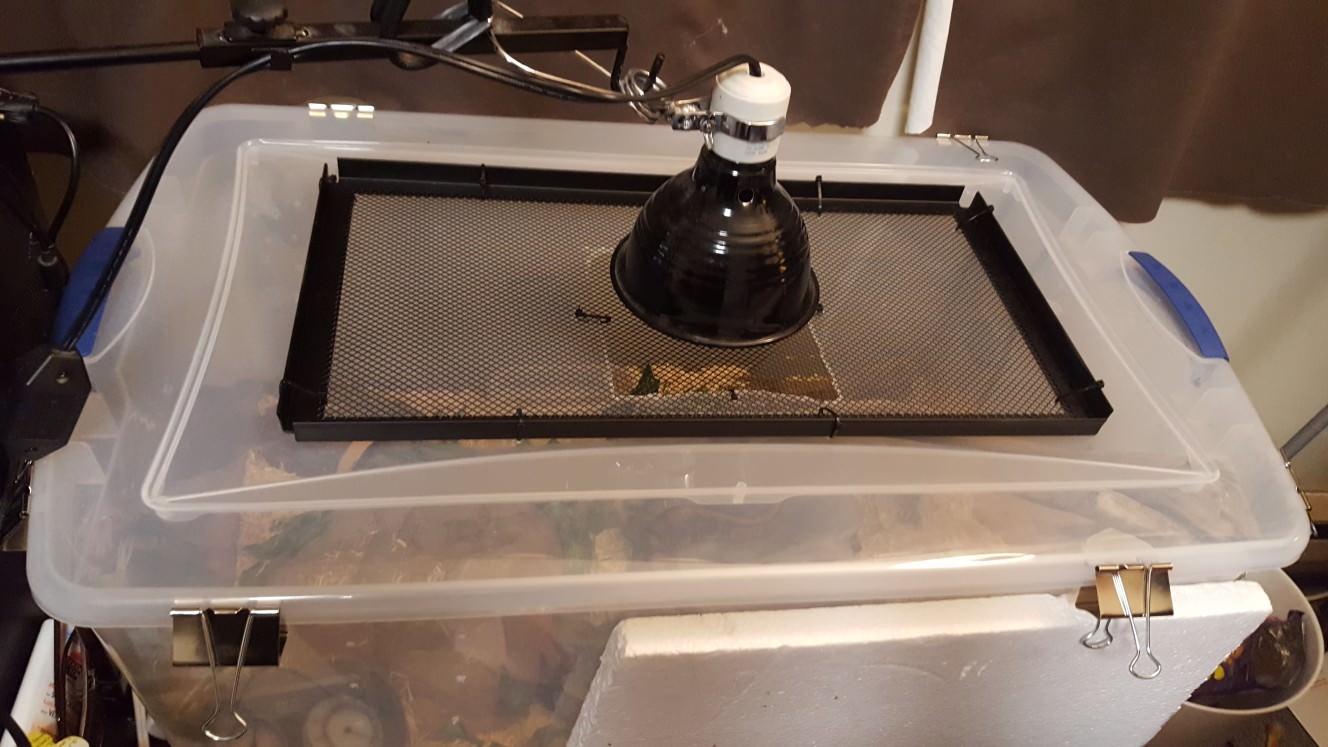 Btw- for using a second UTH or CHE or something- we did consider it but the tub is quite tall(has a ton of floor space as well) and he utilizes the height with the sticks we have secured in, so a second UTH wouldn't effectively boost the ambient temps enough, I think. If it was a shorter tub then it would definitely work though.
