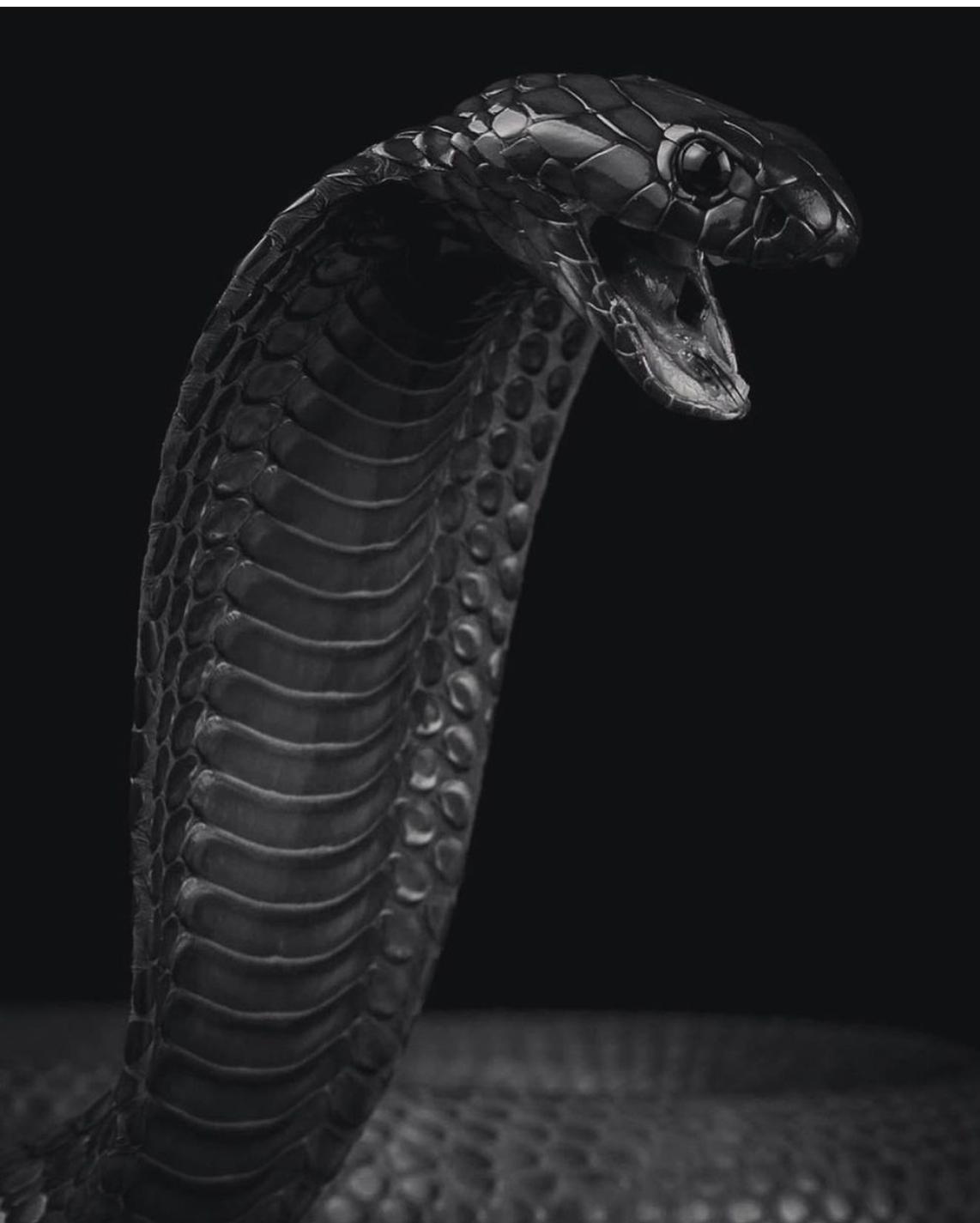 How on Earth am I just now finding out there are pure black cobras? I'm at least assuming this one is a black and white photo, their mouths aren't that dark of a color, right?