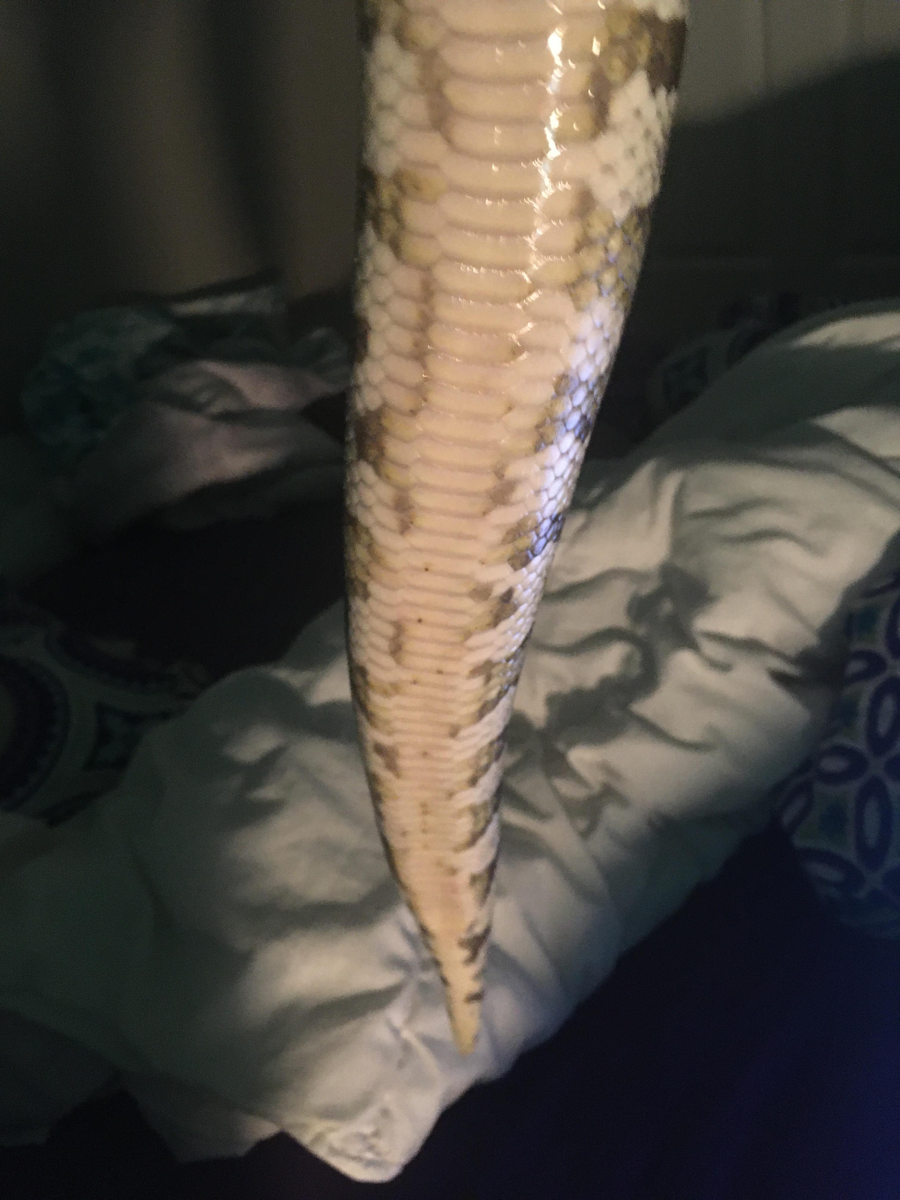 I noticed these brown spots on this ball python's tail/belly, which I dont remember seeing before. I tried wiping them off with a warm wash cloth but they didn't come off. She isnt my ball python but im looking after her for my teacher over winter break. She ate a live rat 6 days ago but has not pooped yet, and she does not have any heating or humidity control (not my decision, but i unfortunately dont have the money to buy things for a snake that isnt mine. i asked if my teacher would give me a heat lamp but he said it would melt her enclosure). I'm not sure if these could be causes for this or if its even a problem, but i figured the information could help. Should I be concerned about this, or am I worrying over nothing? https://ball-pythons.net/forums/cach...om/pfh38tY.jpghttps://ball-pythons.net/forums/cach...om/rNocnHH.jpg