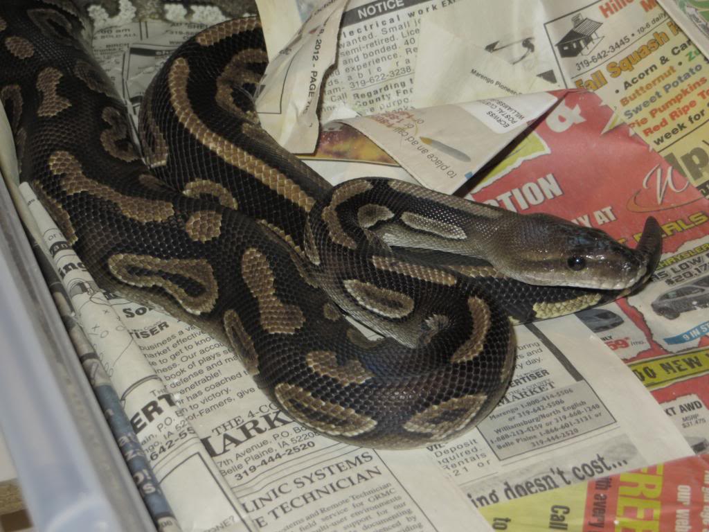 Here is a snake that I bought as a male in October, really dark and pretty. Found out it's a female because of glowing/ovulation