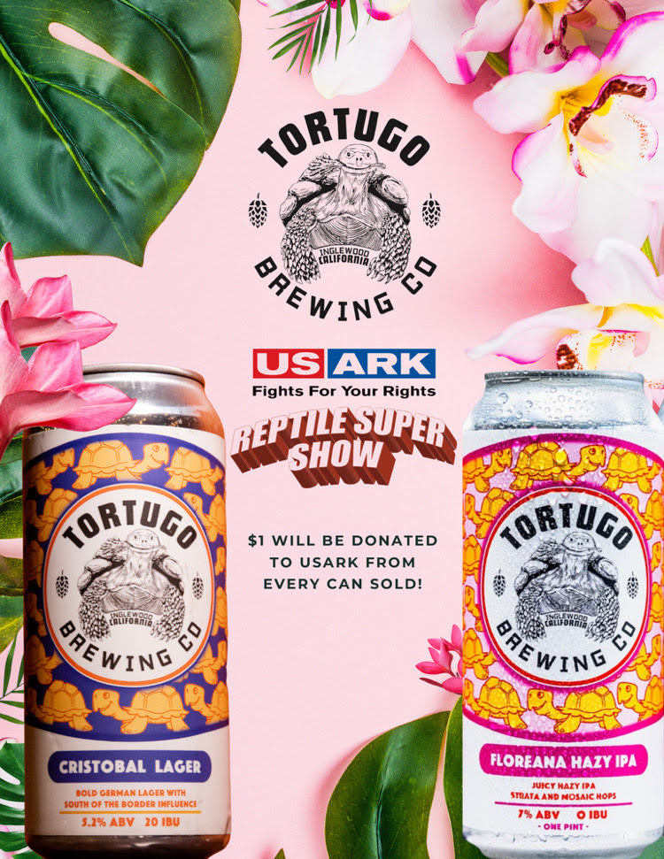This is always the first major show of the year, and it is always awesome! The Reptile Super Show does it BIG! It happens in Pomona, CA, this weekend and you want to be there. There is so much to see at this huge event. Be sure to note the new show hours (below). Plus, a big shout out to Tortugo Brewing Company. Thanks to Tortugo and the Reptile Super Show, Tortugo Beer will be available during the show, and $1 from every can will go to USARK. Thanks, Tortugo! See the image at the bottom of this email.